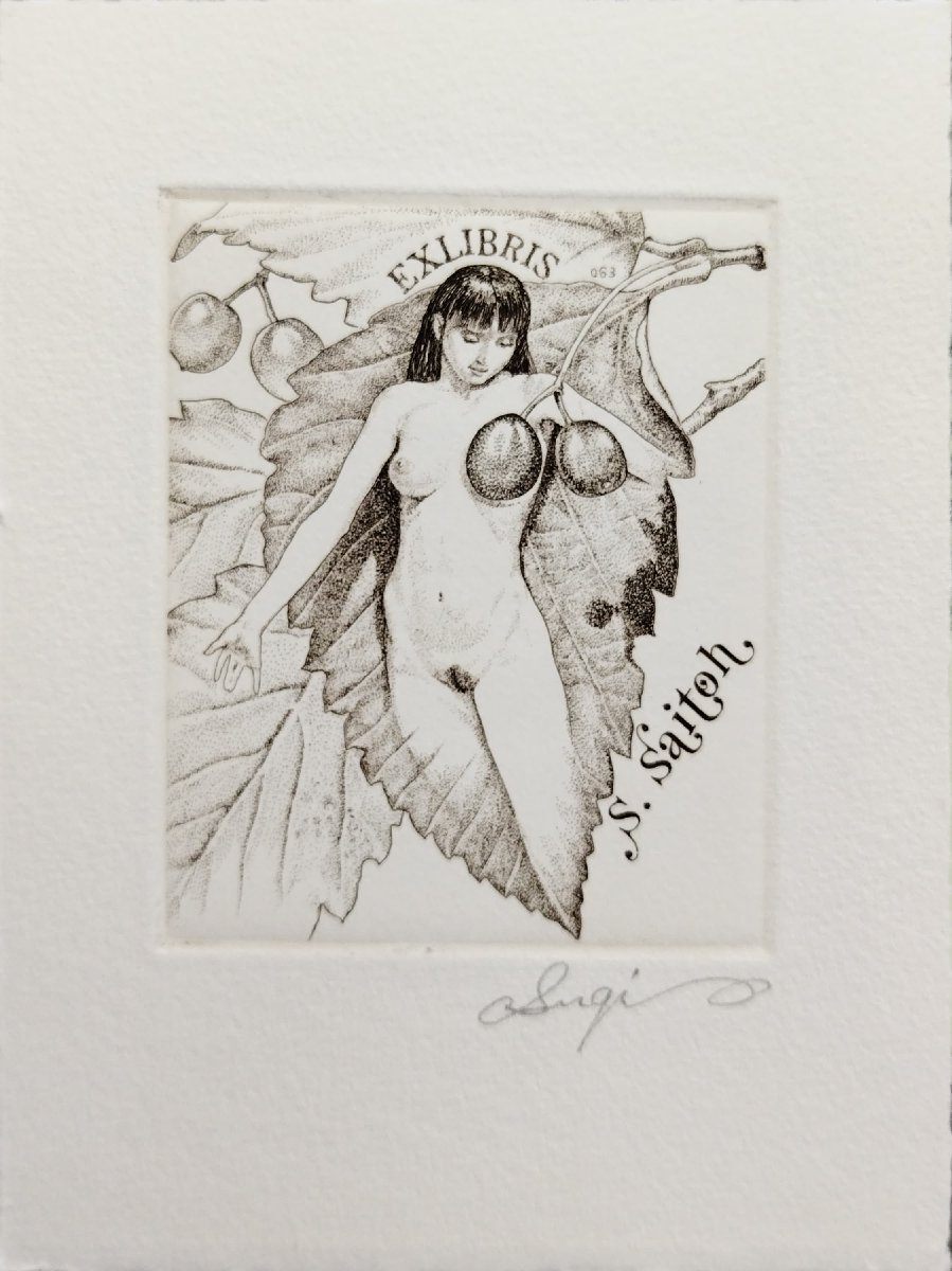 真作保証『杉本一文 オリジナル銅版蔵書票』直筆サイン入