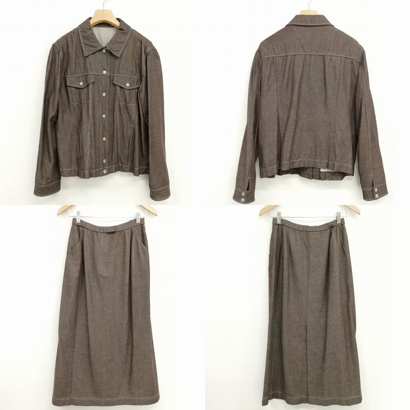 キャラオクルス CARA O CRUZ レリアン スーツ セットアップ ジャケット ロング スカート デニム 9 ダークブラウン レディース