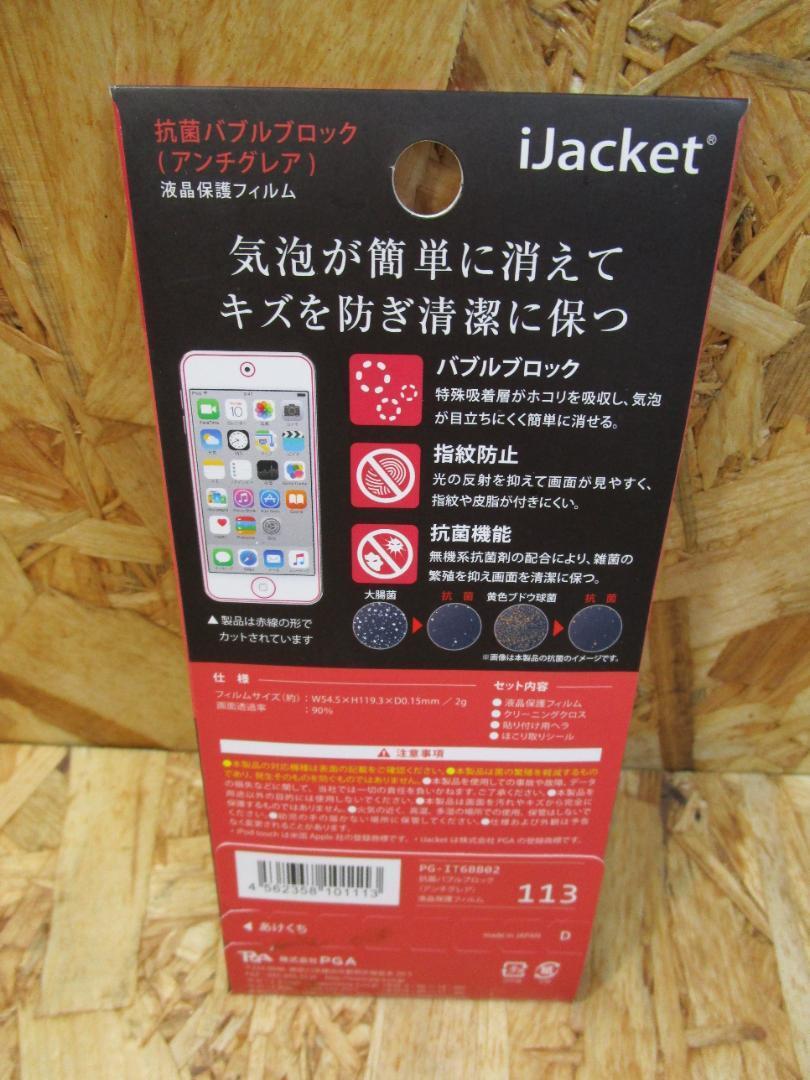 「PG-IT6BB02」は、気泡がかんたんに消えて貼り易い! さらさらした触り心地! 指紋が目立ちにくく、指すべりがなめらかな防指紋・アンチグレアに抗菌加工がされているiPod touch 6th/5th用の液晶保護フィルムです。液晶画面の指紋などを気にされる方にオススメです。抗菌加工がしてあるので、菌の繁殖を抑えるので液晶画面を清潔に保つ効果があります。フィルムを貼るのに便利なヘラ、クリーニングクロス、ほこり取りシールの3点セットが付属します。