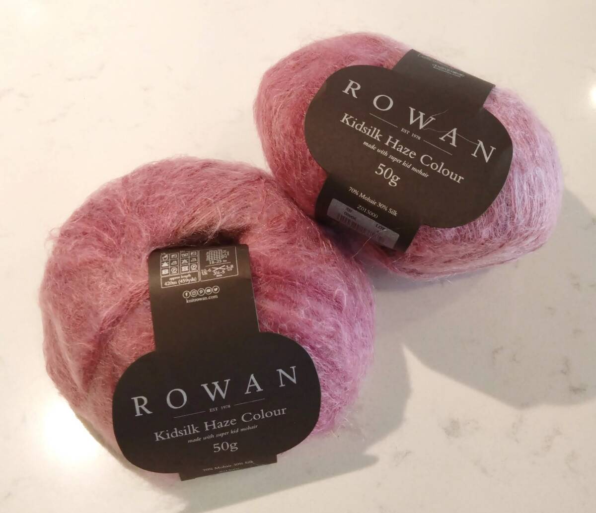 ローワンの定番人気糸「キッドシルクヘイズ」は単色ですが、
