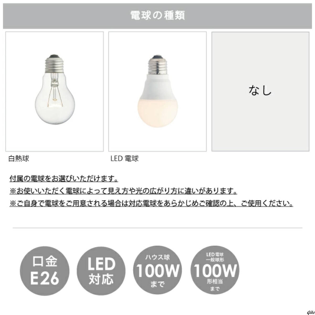 ・対応電球:E26口金/白熱球(最大100W)またはLED電球(100W相当)※電球は別売
