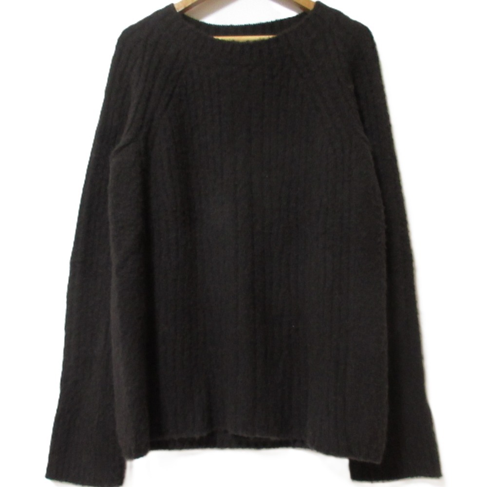 美品 HERMES エルメス クルーネック 長袖 ロングスリーブ ニット セーター ダークブラウン