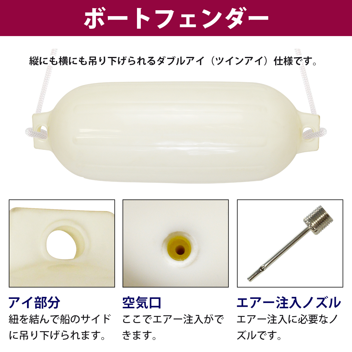 『6セット』 ボートフェンダー 580×190mm フェンダー ロープ 2m 白/ホワイト 浮き ブイ フロートロープ 係留ロープ
