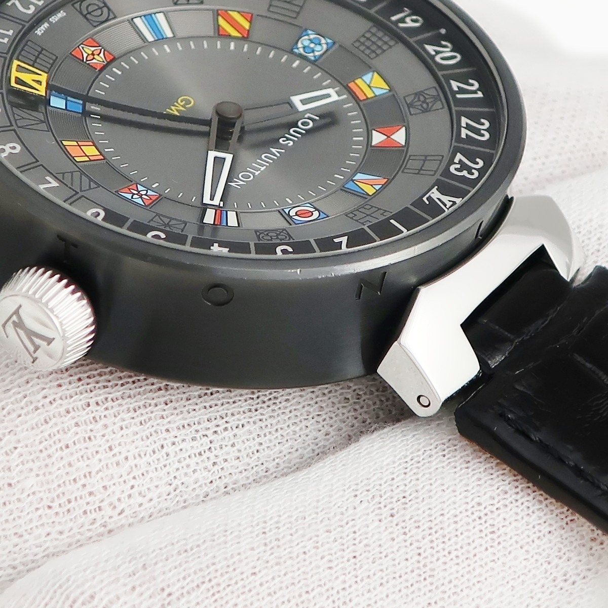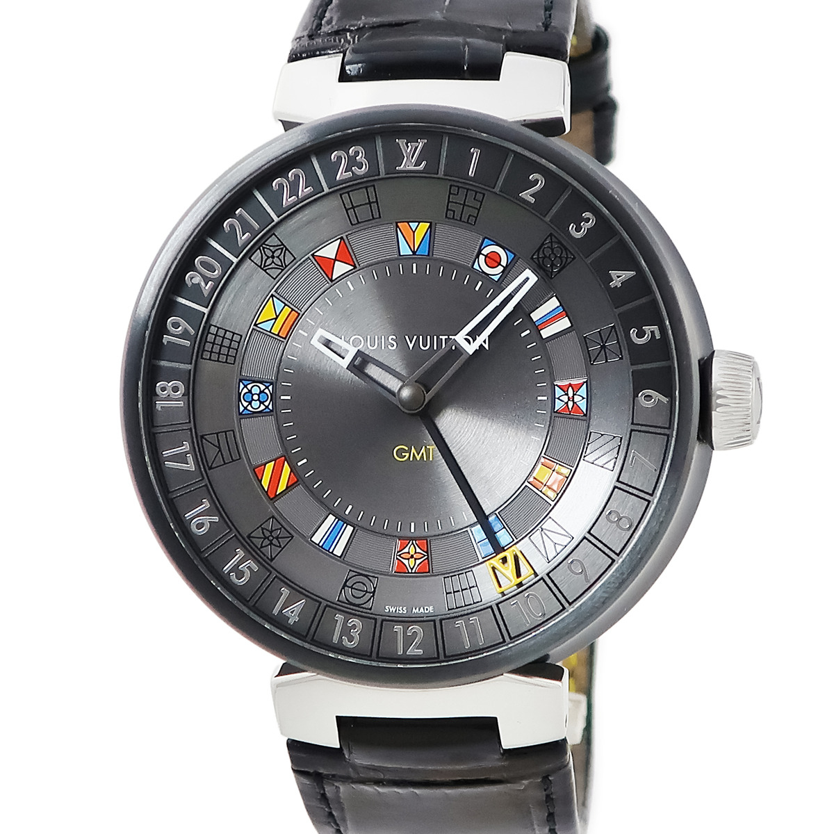 ルイヴィトン タンブール ムーン デュアルタイム QA097Z アラビア フラッグ GMT ラウンド クオーツ
