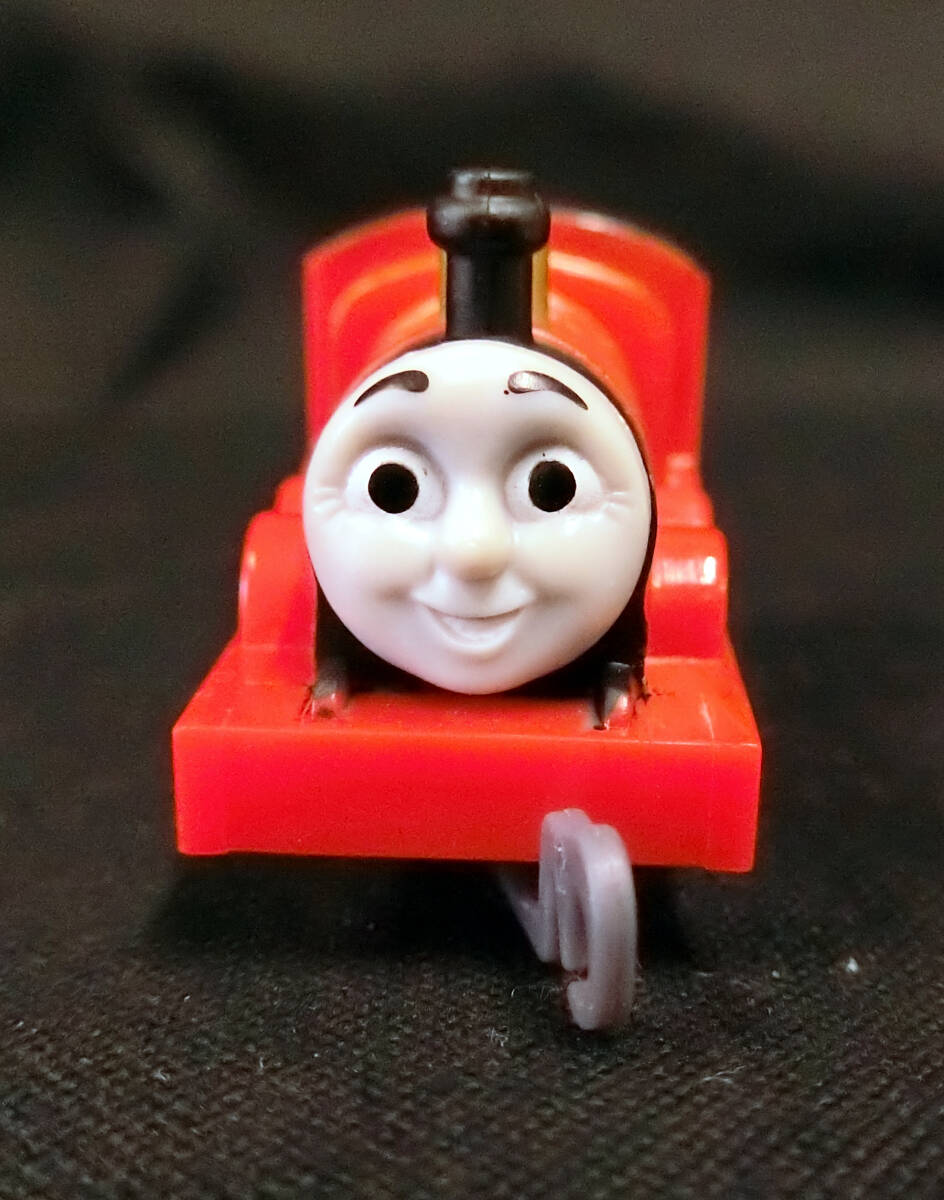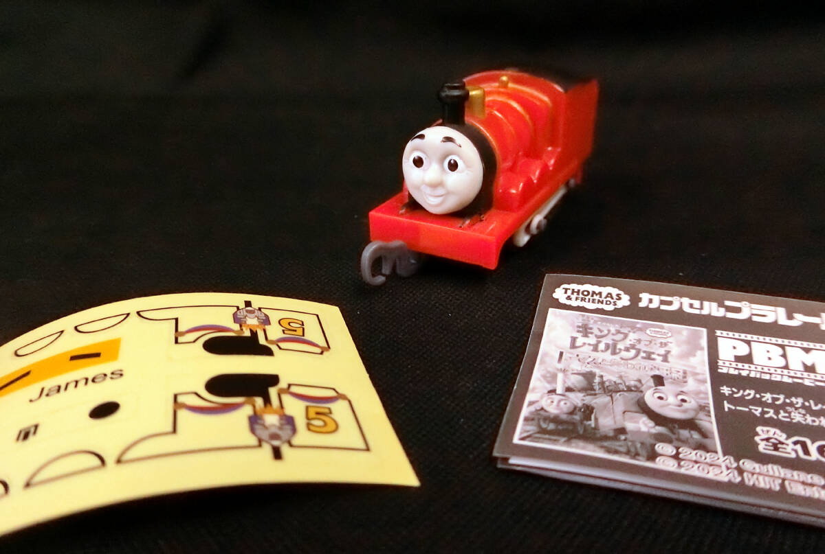 タカラトミーアーツ発売、きかんしゃトーマス(Thomas & Friends) カプセルプラレール「PBMS キング・オブ・ザ・レールウェイ トーマスと失われた王冠」編のなかの 「ジェームスセレモニー (連結パーツ付)」です。