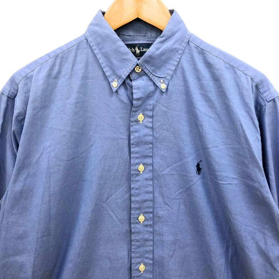 美品◆シャツ ラルフローレン 90S ボタンダウンシャツ ブルー メンズ サイズ15.5 RALPH LAUREN 【AFB42】