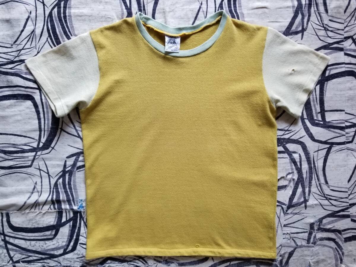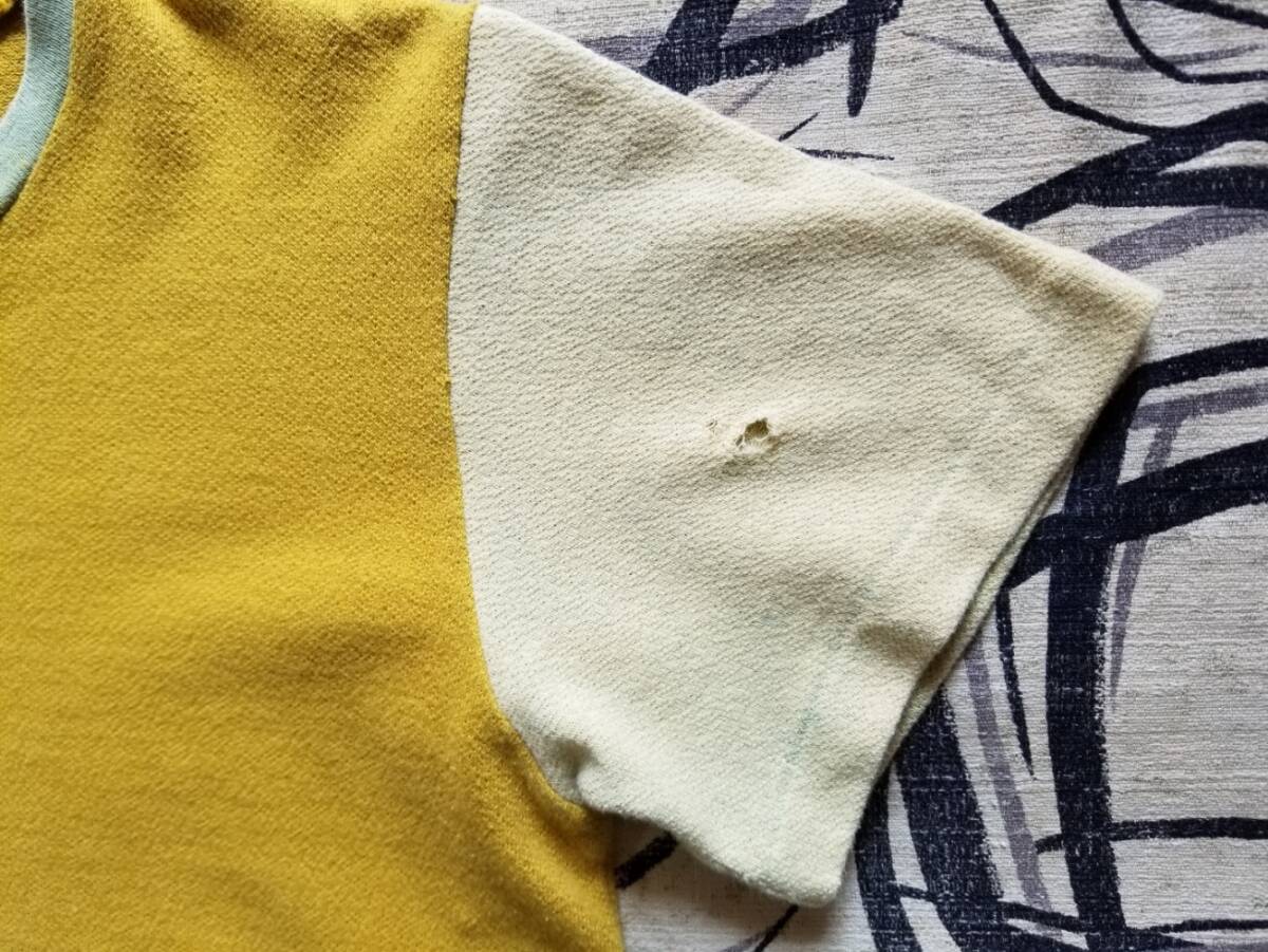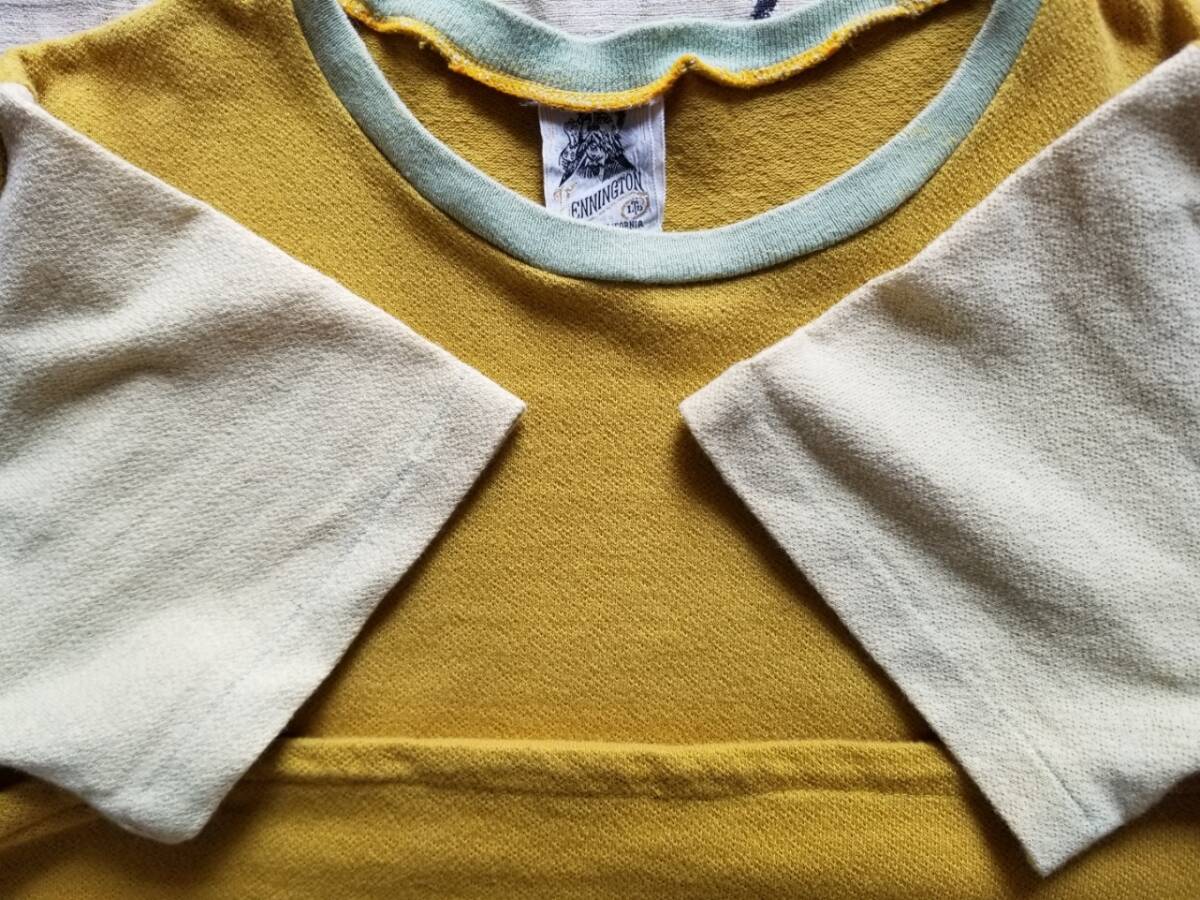 70s 80s ビンテージ オリジナル USA製 Kennington CALIFORNIA ケニントン レア ジャガード ツートン からし色 Tシャツ L シングルステッチ