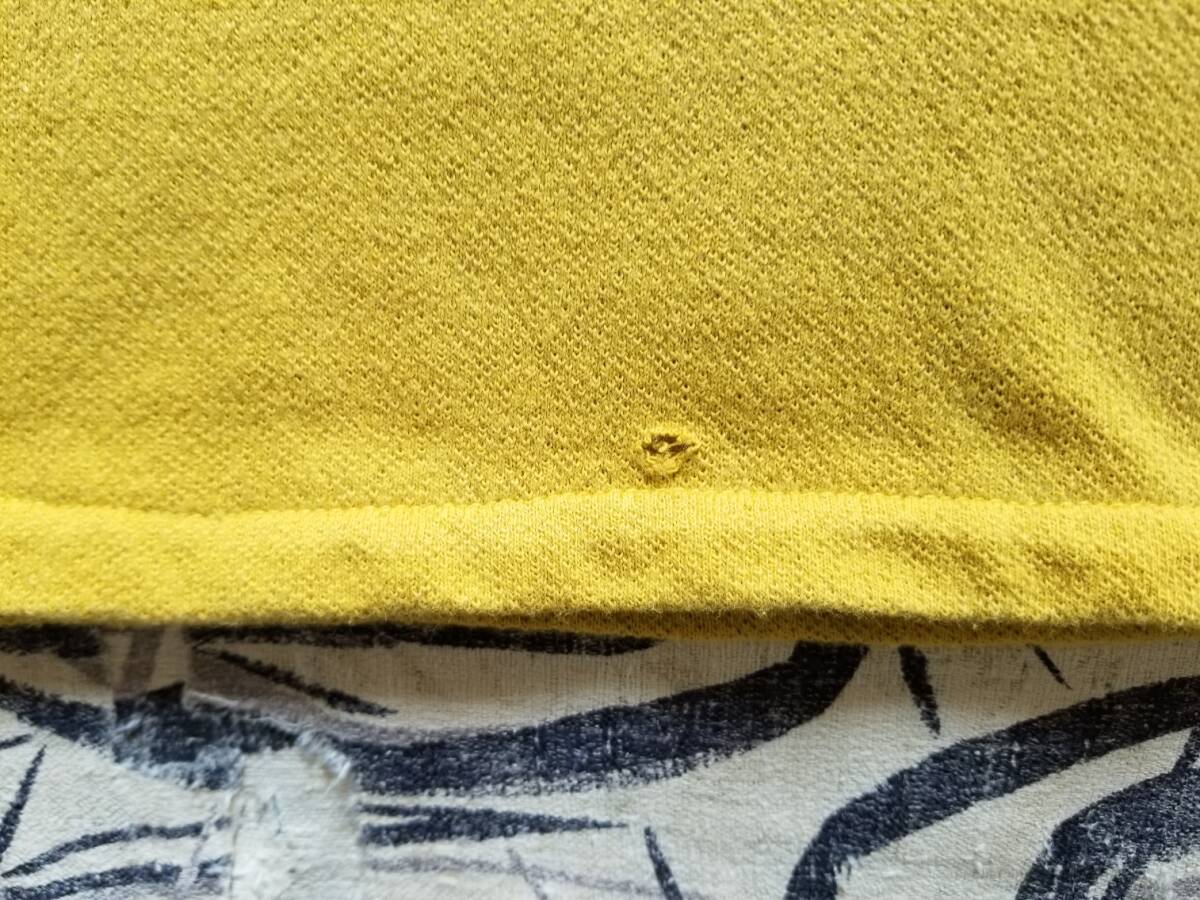 フロント左袖に解れによる1cm程の穴空き、裾に5mm程の穴空きあり。
