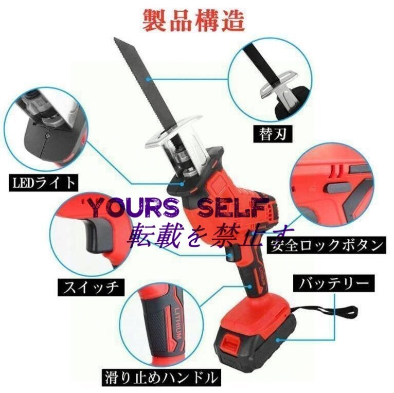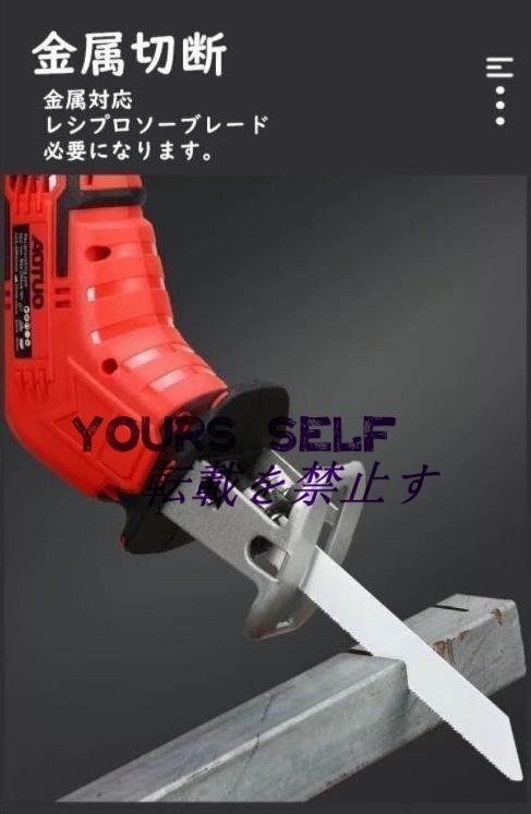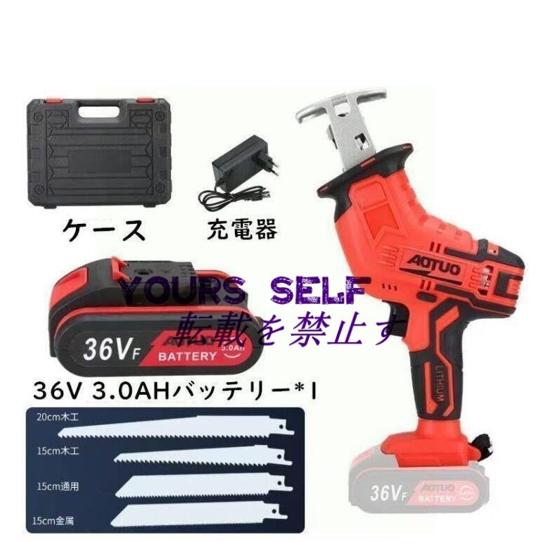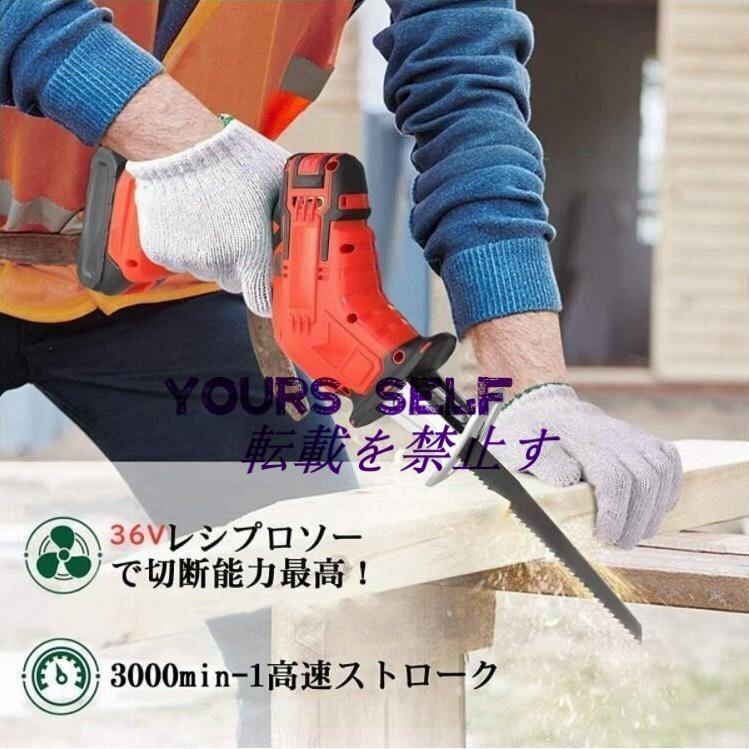 電動ノコギリ レシプロソー 充電式 コードレス 36V 無段変速 安全ロックボタン 金属切断 木工切断 庭木剪定 収納ケース付き U147