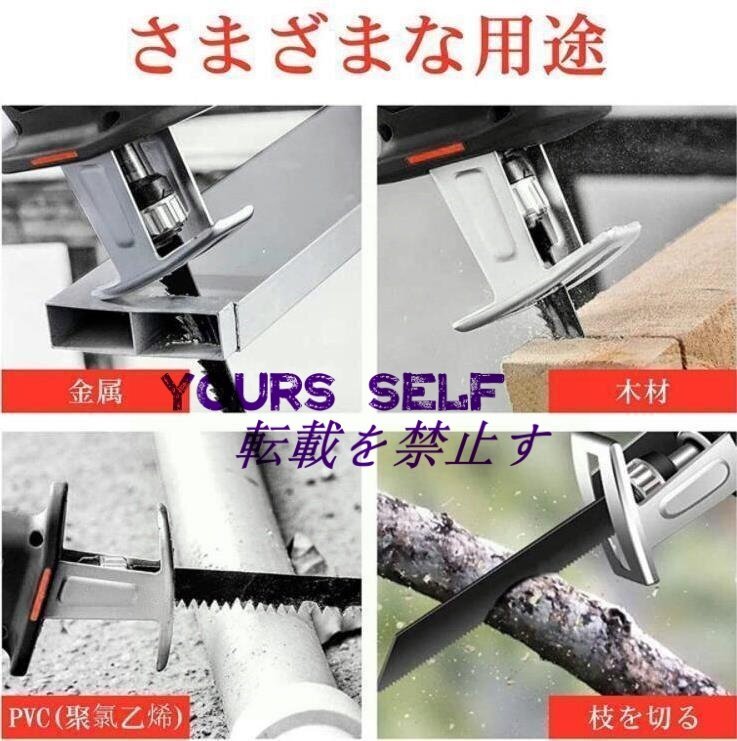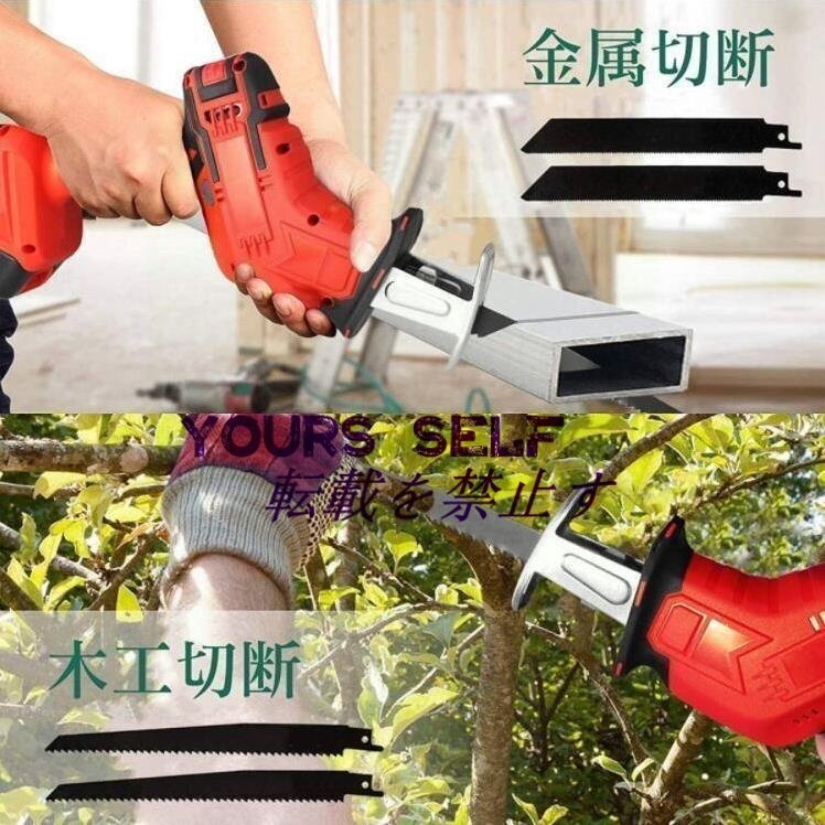 【ブレード交換簡単&切断面きれい】コードレスレシプロソーは替刃4本が付いているので、様々な材料のカットが全部可能になり、切れ味も抜群です。また、工具レスでブレード交換ができるので、適切なブレードを使い分けることで、粗大ゴミの解体、庭木剪定、金属類の解体や果樹園の剪定などの切断作業の切断面が全部きれいになるだけでなく、作業効率も高く、ブレードの寿命も長いです。
