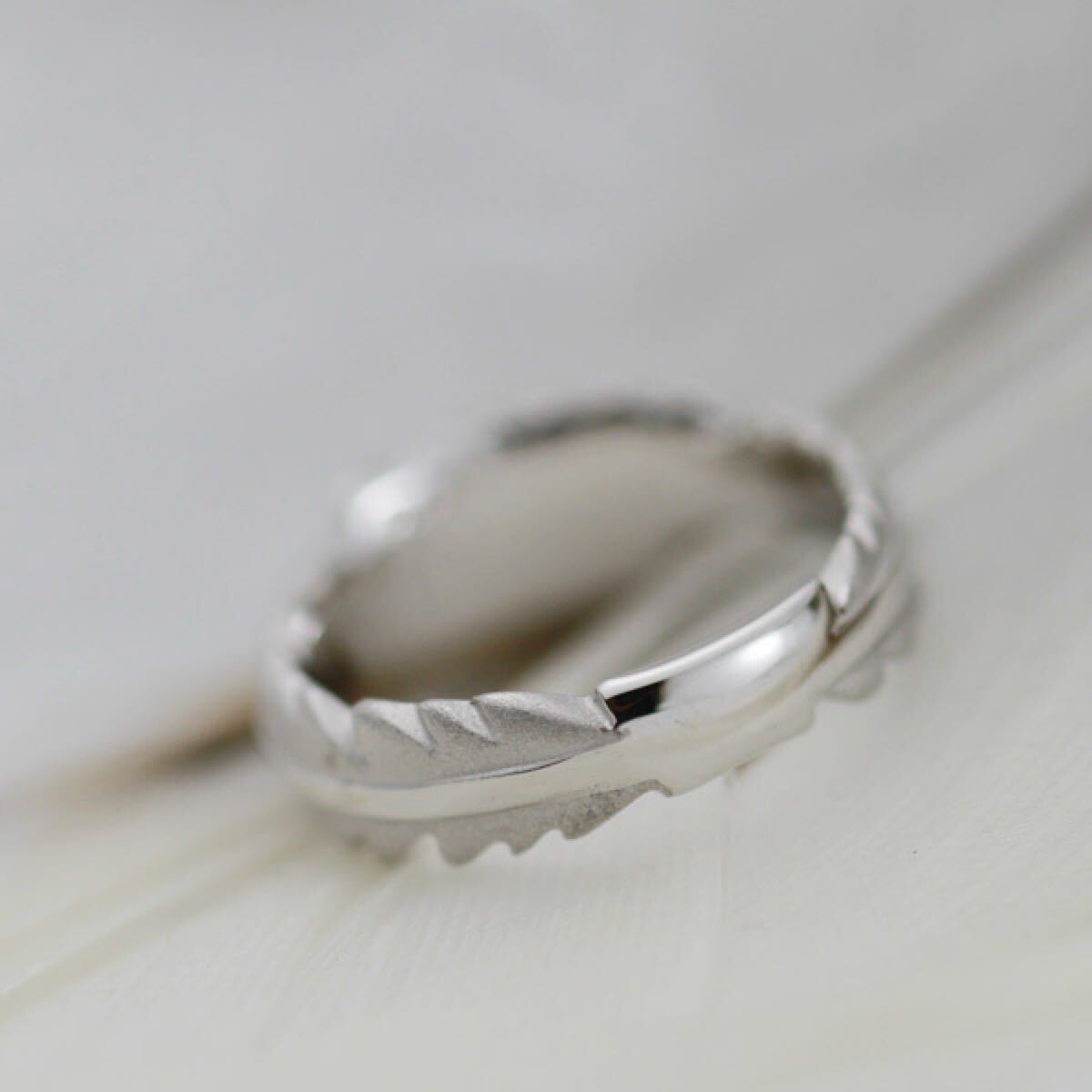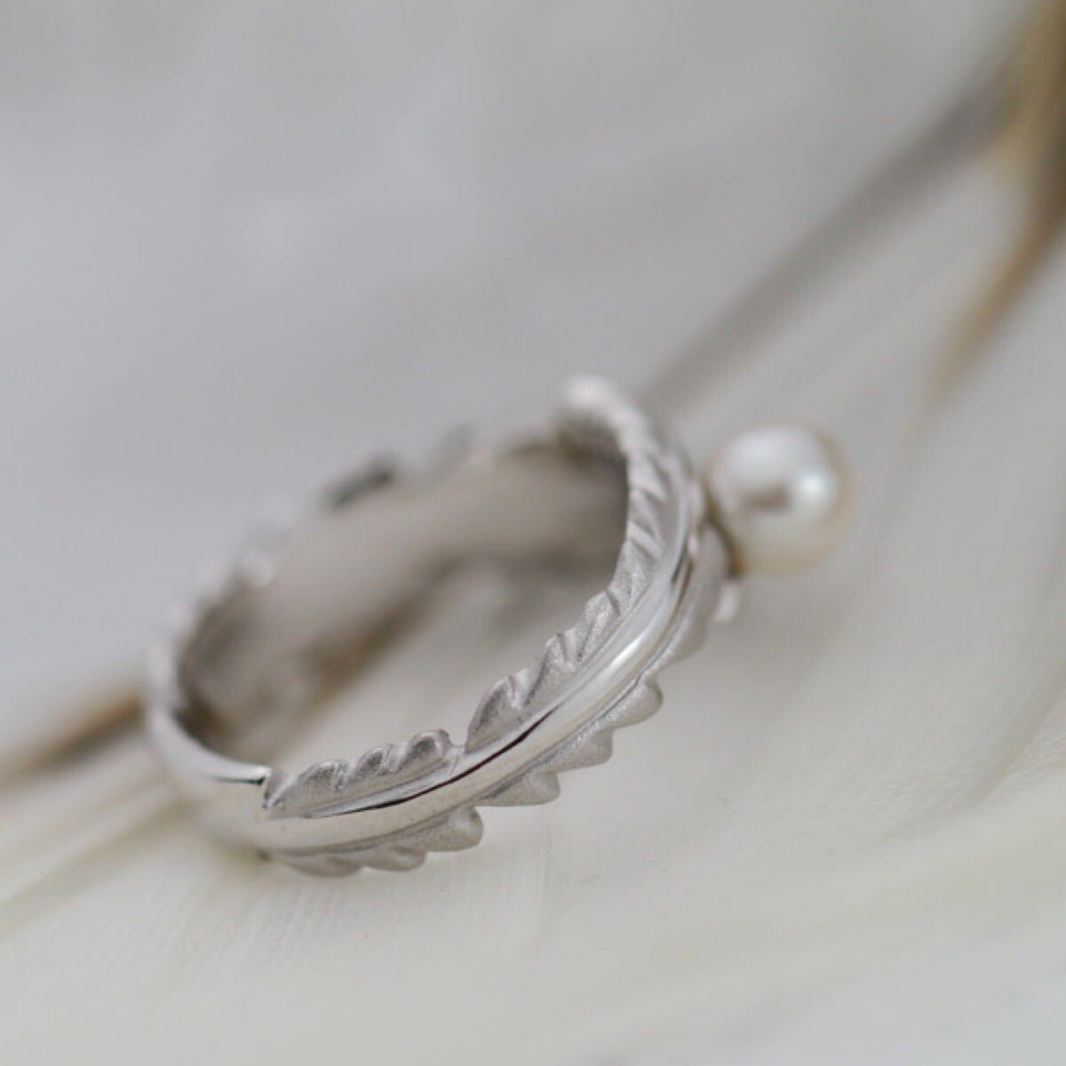 天使の羽根をモチーフにしたベビーリング。優しく繊細な羽根をほぼ一周ぐるりとデザインの中に再現しました。