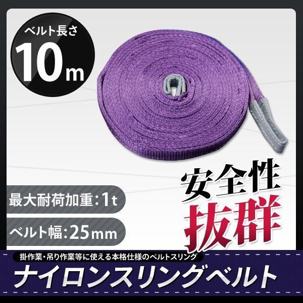 ナイロンスリングベルト 10m 幅25mm 荷重1000kg 1t 玉掛け ベルトスリング 吊上げ ロープ 牽引