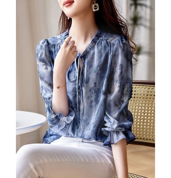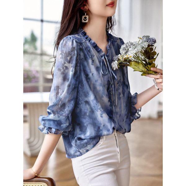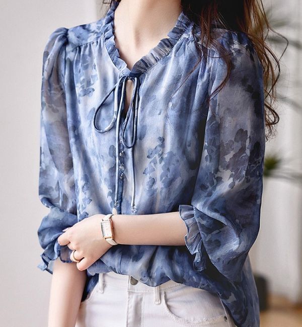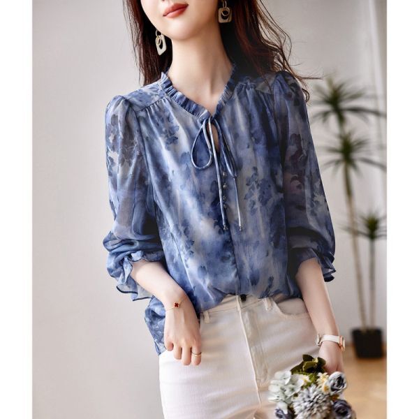 レディース トップス ブラウス フリル シフォン 花柄プリント FY53