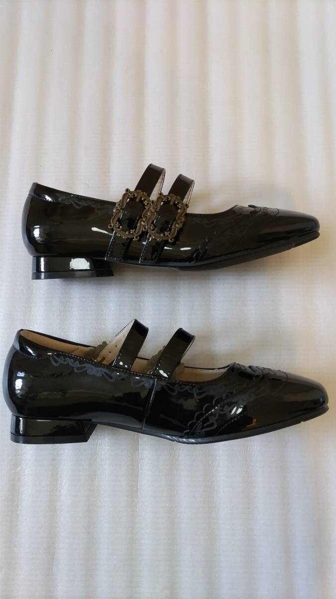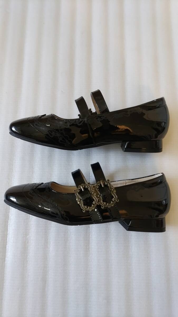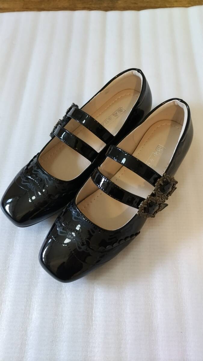 No.2673_海外ロリィタ_未使用黒エナメルダブルストラップパンプス