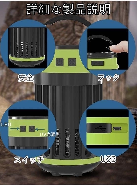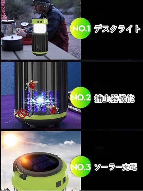 LED ランタン 高輝度 キャンプランタン ソーラーランタン usb充電式 折り畳み式 小型軽量 防水仕様 UV光源電撃殺虫 捕虫器機能付き 日本語