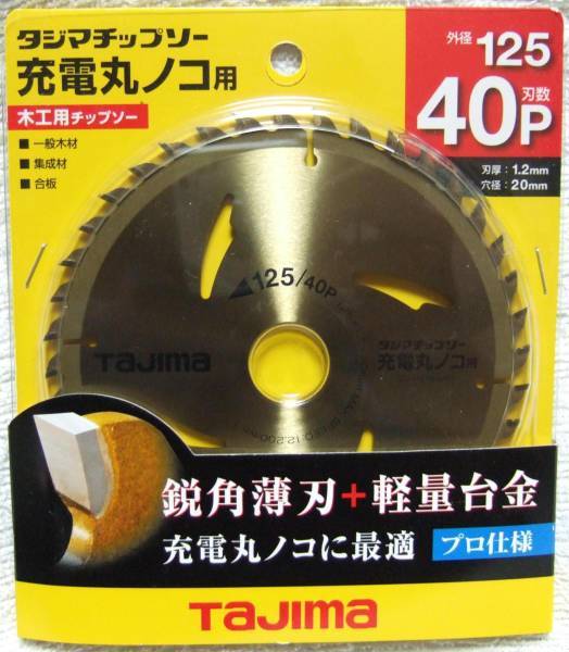タジマチップソー充電丸ノコ用 125-40P  10枚 木工用鋭角薄刃軽量台金 TC-JM12540