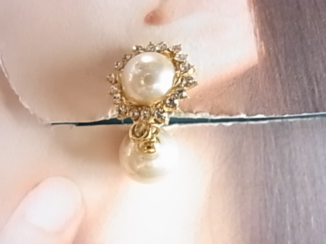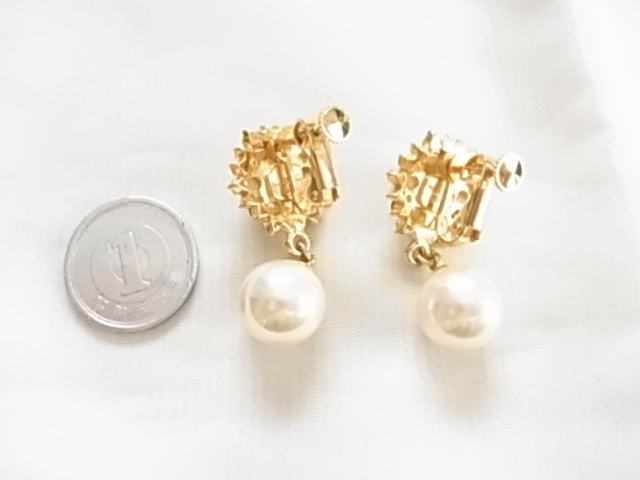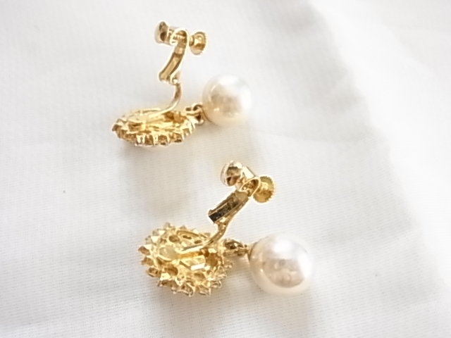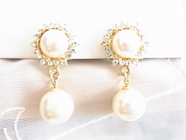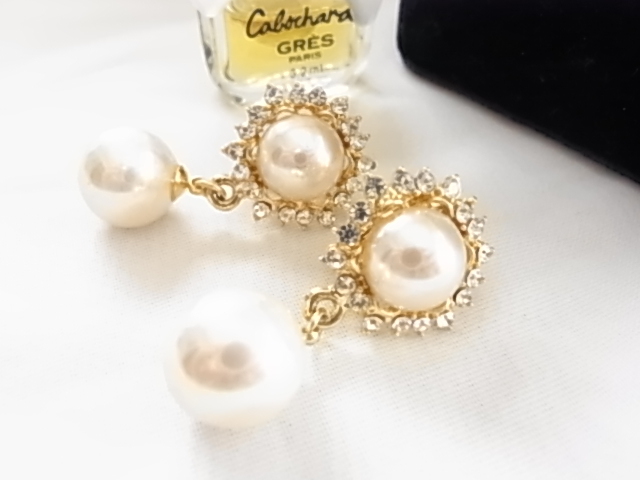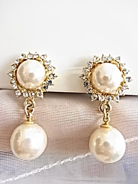 ♪ビンテージ/ヴィンテージ クリアラインストーンとイミテーションパールが輝いて煌めくビジュー 輝石 耳元で揺れる 素敵なイヤリング