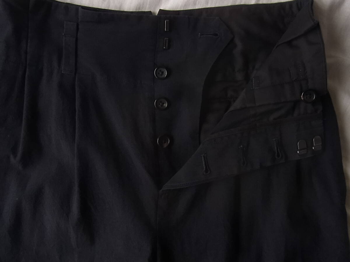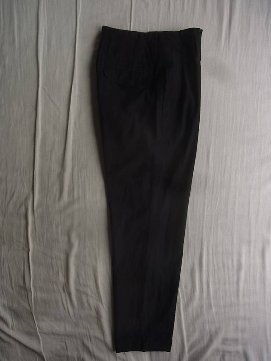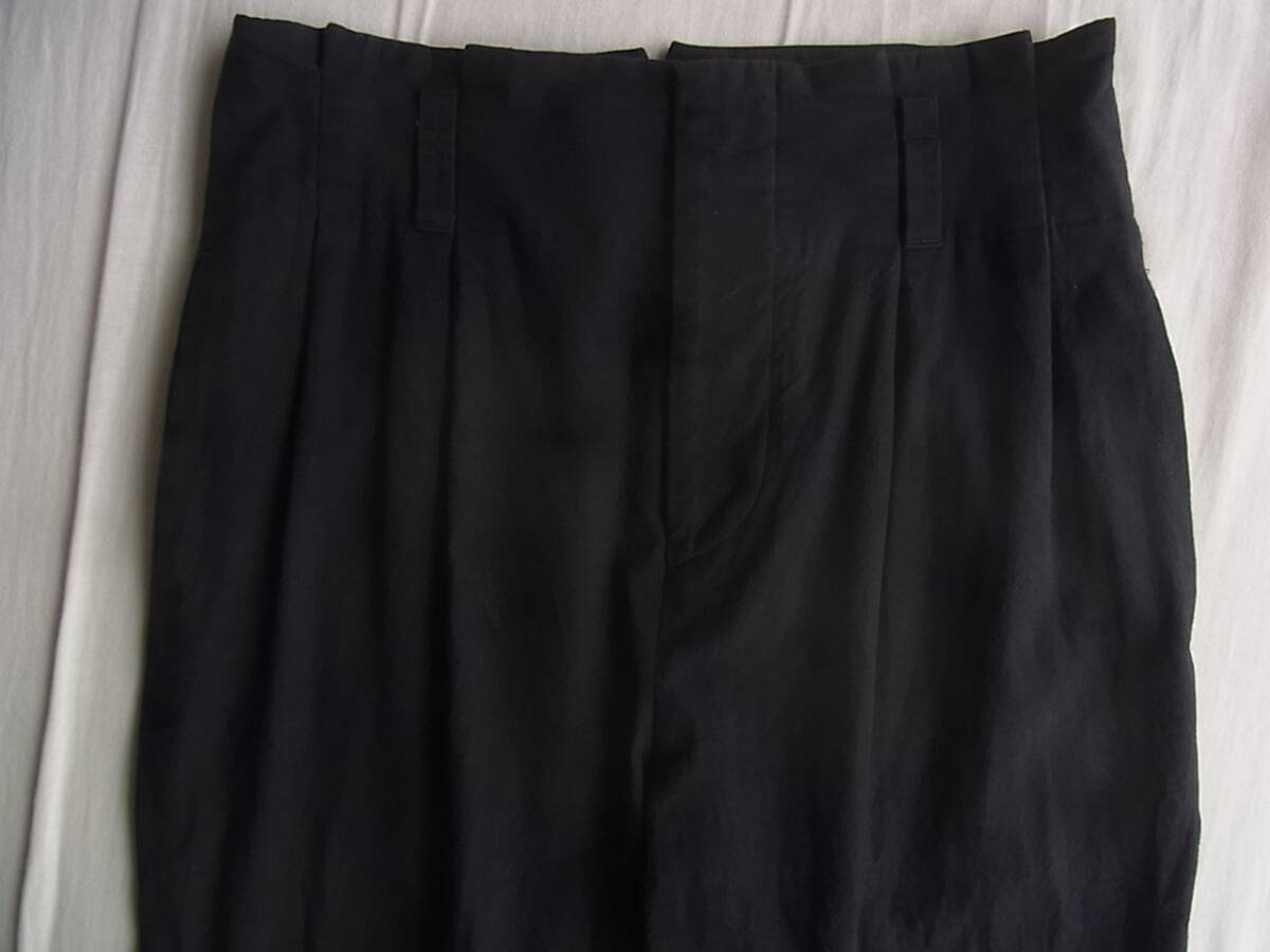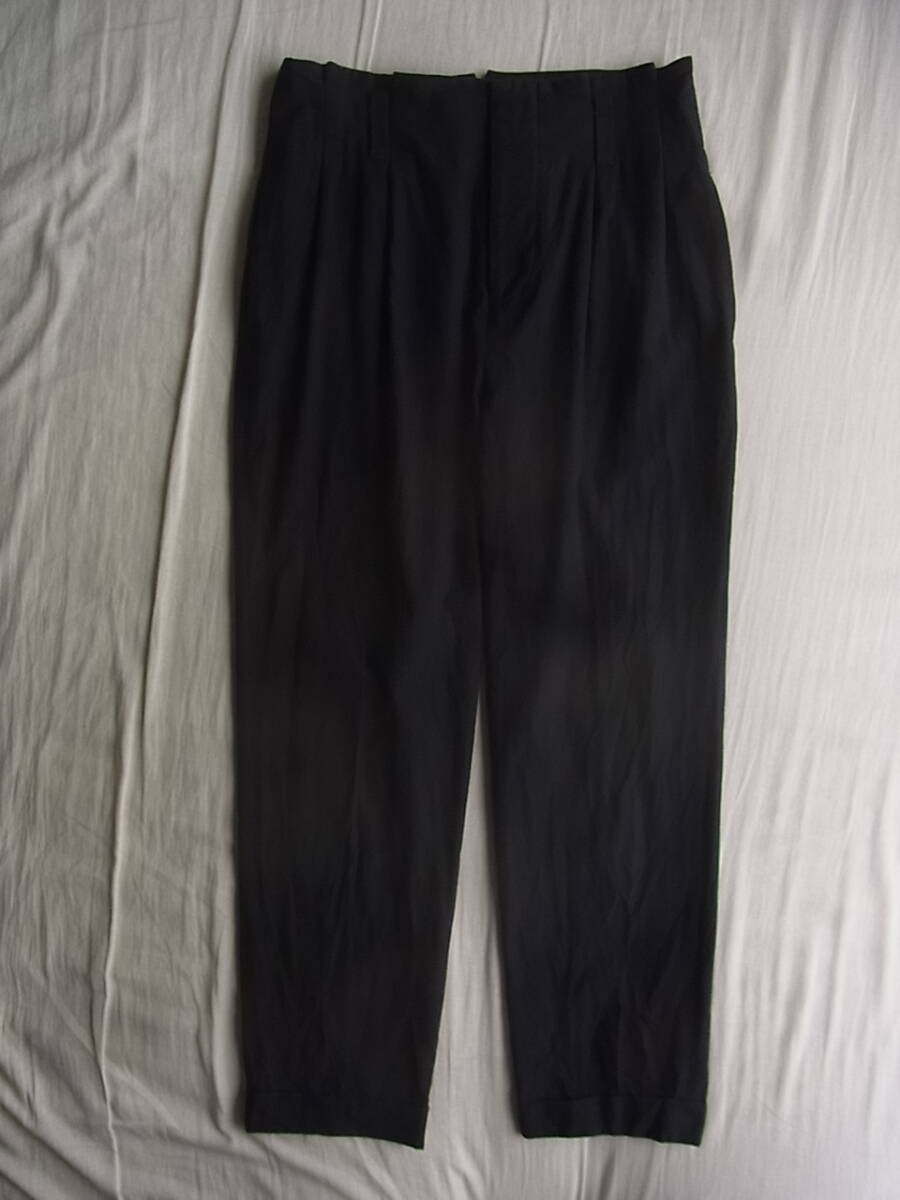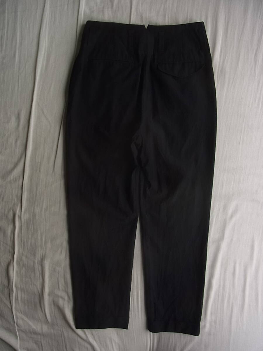 マーガレットハウエルのシルクコットン素材で2プリーツ、テーパードシルエットのパンツになります。USEDで着用感と、素材の特徴でシワ状に白くアタリの箇所が御座います。それ以外には特に目立ったダメージ等は御座いません。