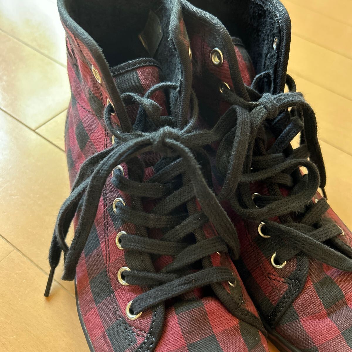 靴紐がかなり長いタイプでリボン結びをしていますが、写真の通り結構長いです。