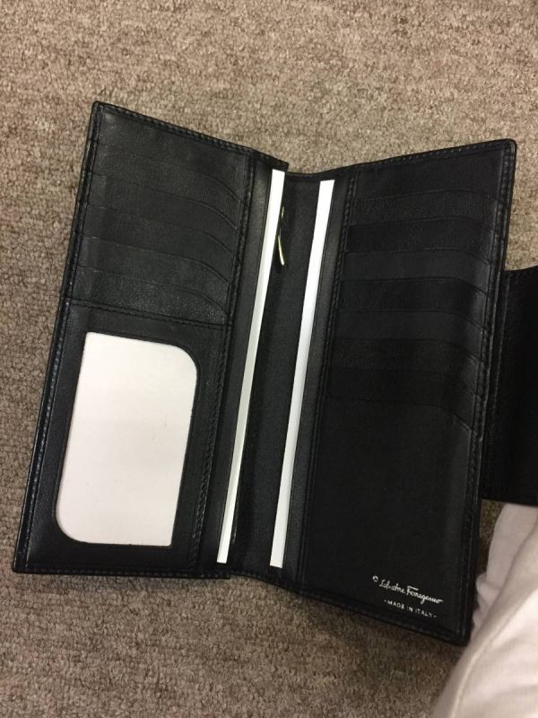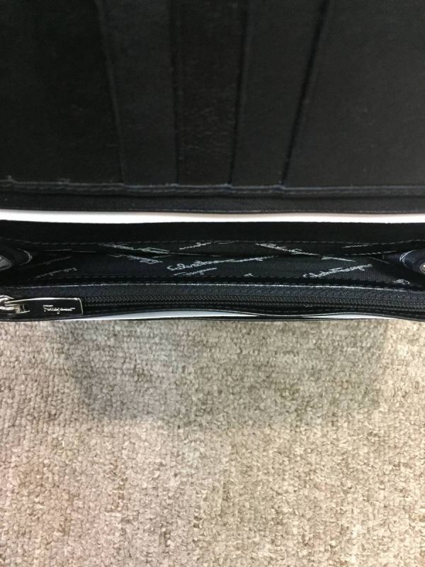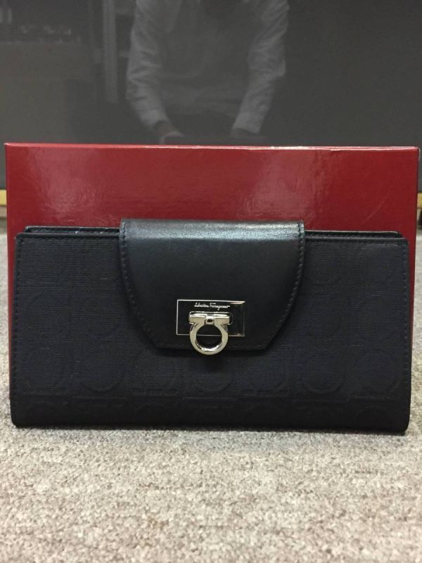 美品!格安!フェラガモ ガンチーニ 総ロゴ キャンバスレザー 二つ折り長財布