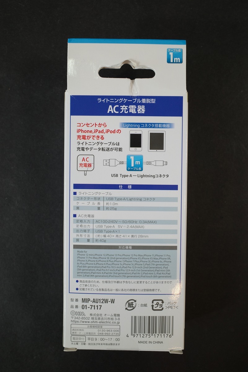 未使用 オーム電機 AC充電器 MIP-AU12WーW