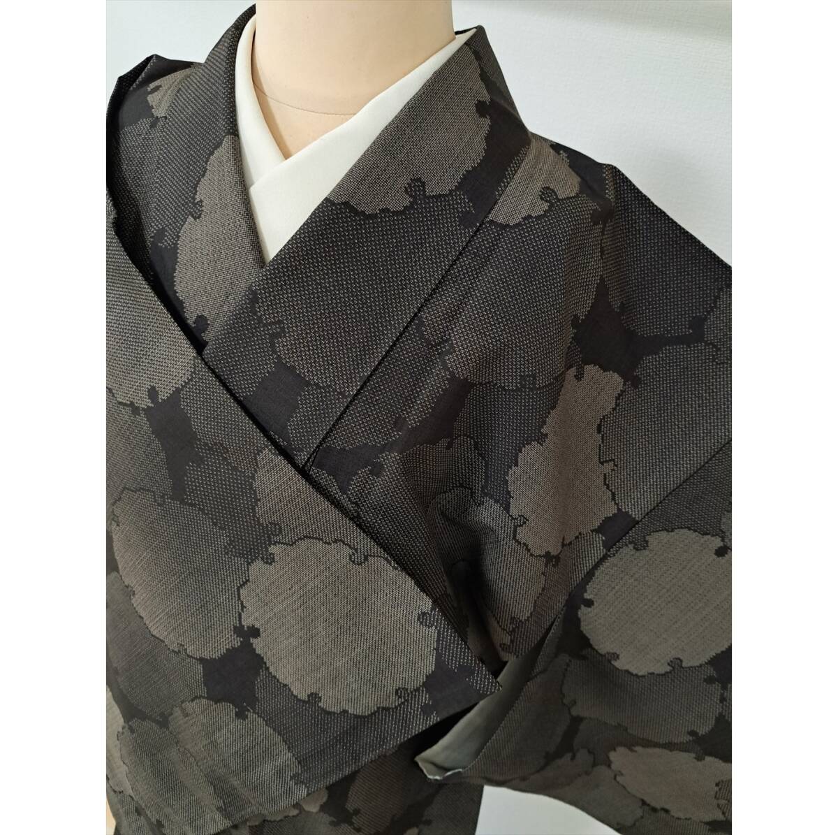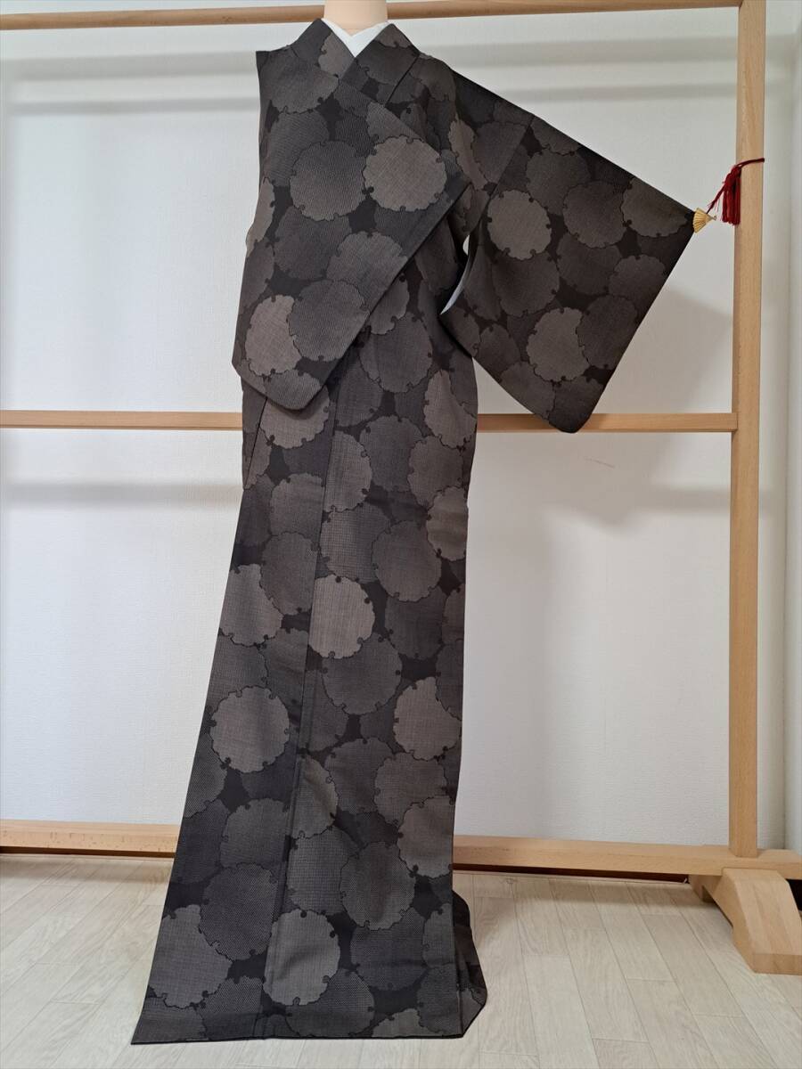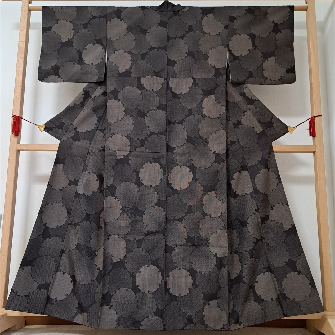 即決■着物の越田■裄67.5身丈161.5 紬 袷 ★美品★ 雪輪 普段着物 シックな色合い 巣◇ふ12S06