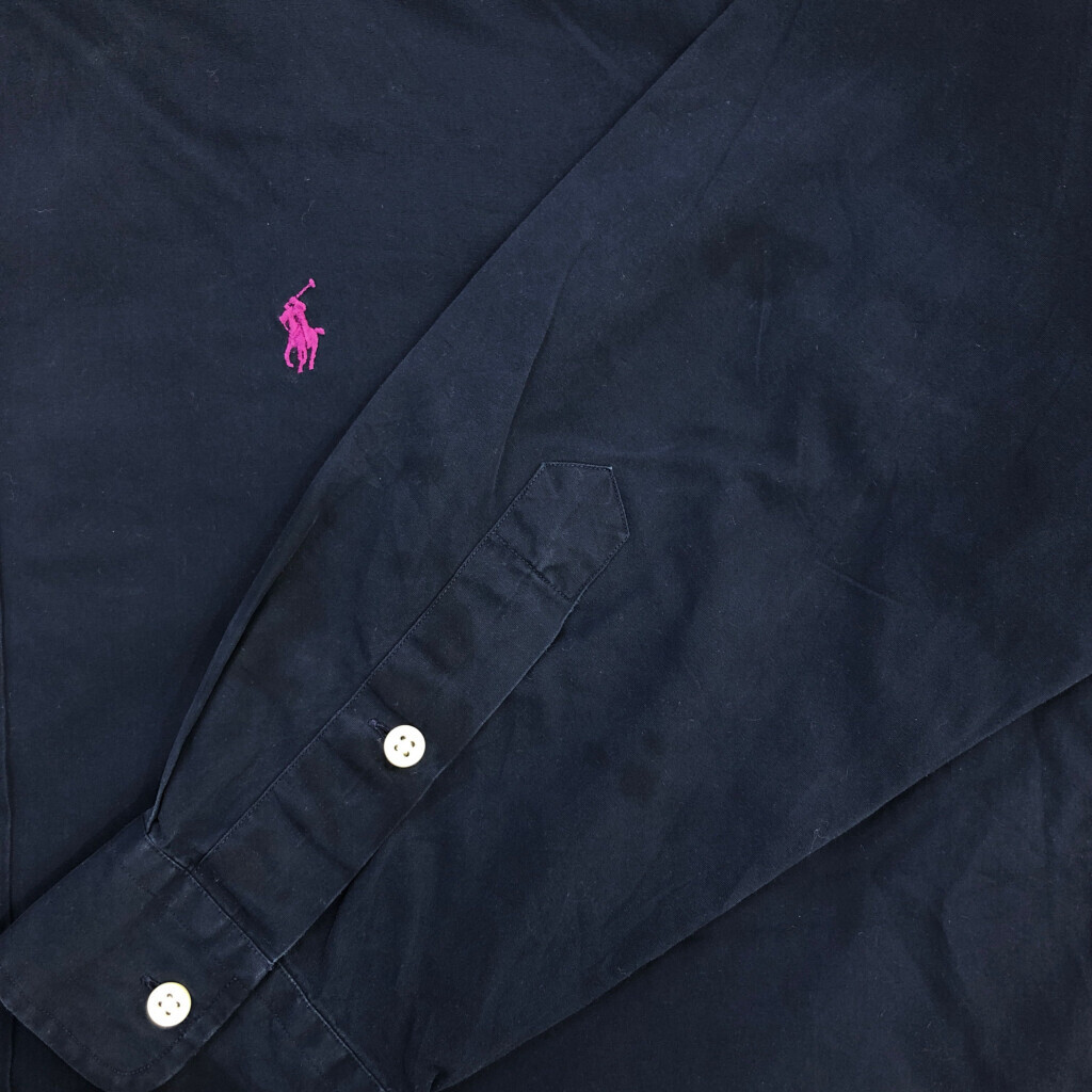 [商品管理番号] T7783 [ブランド] RALPH LAUREN/ラルフローレン [サイズ] L [実寸サイズ] 肩幅:約54cm 着丈:約80cm 身幅:約72cm 袖丈:約61cm [主な素材] 表地 : コットン [色] ネイビー [仕様] BLAKE [状態] 汚れ:袖、袖先 特記事項:色褪せ | |||