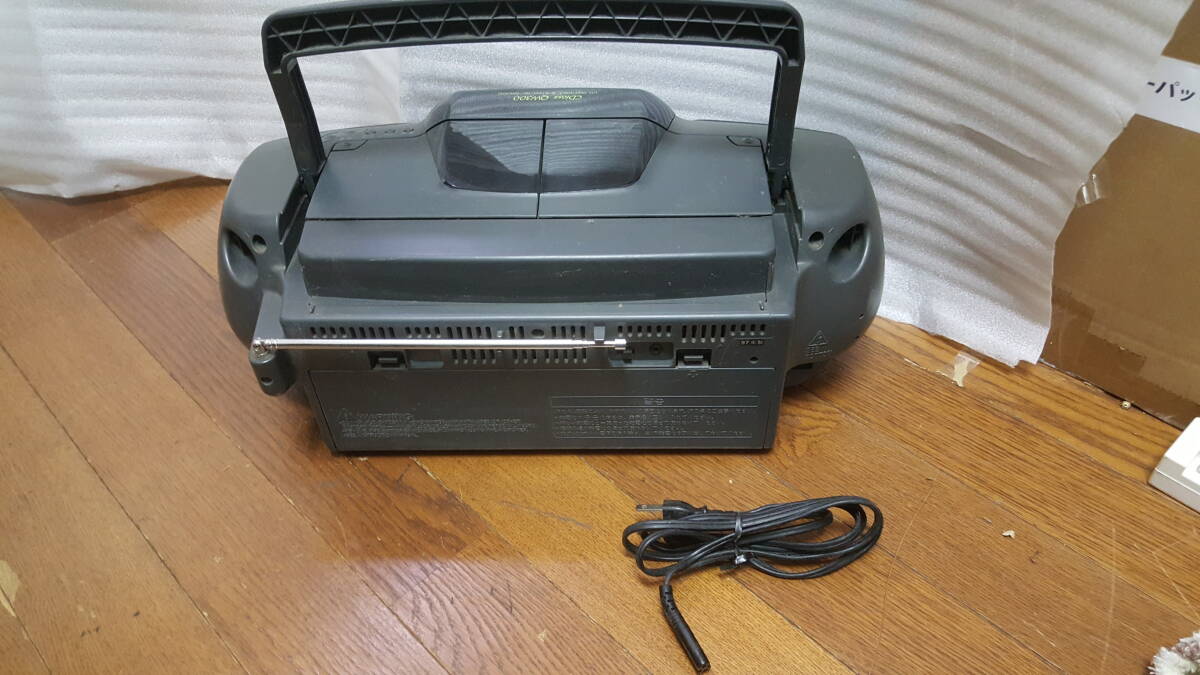 ★動作確認済み。 コンセントをつないで電源が入り動作することを確認しました。 CDが再生出来ました。 AM/FMラジオの受信が出来ました。 カセットは再生できませんでしたがテープの巻き込みはありませんでした。 リモコンは付属しません。 ジャンクにてお願いします。