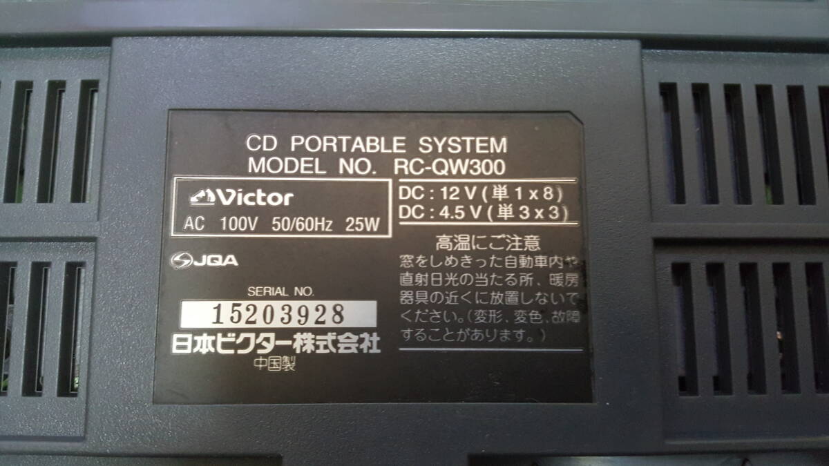 【※ジャンク】 Victor CDラジカセ RC-QW300 本体とACケーブル(リモコンなし) 動作確認済み(カセット再生せず) ジャンクにて