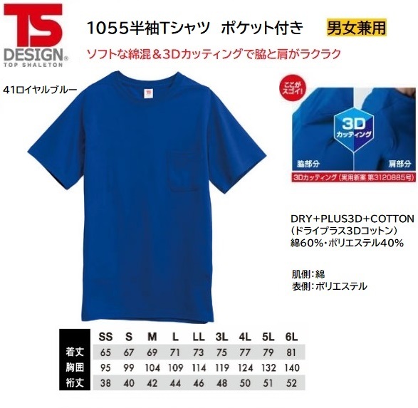 [ネコポス発送/1枚]★TSDESIGN 1055半袖Tシャツ ポケット付き【41ロイヤルブルー・5Lサイズ】定価3000程度の品、即決880円!!