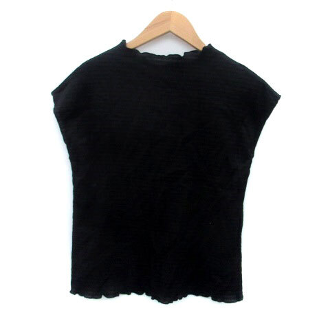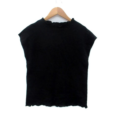 エージーバイアクアガール AG by aquagirl ブラウス カットソー クルーネック フレンチスリーブ 無地 36 S 黒 ブラック /HO20 レディース