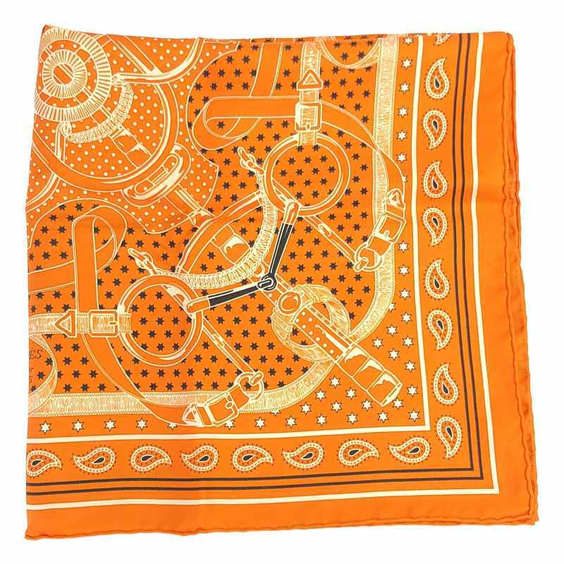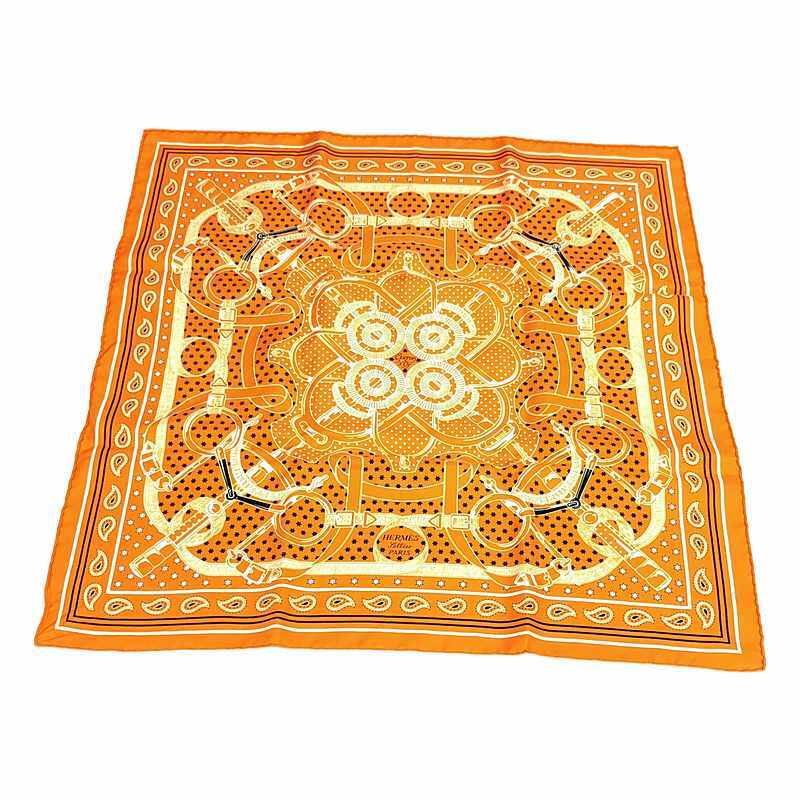 【美品】 HERMES / エルメス | カレ55 エプロンドール 黄金の拍車 シルク スカーフ | オレンジ