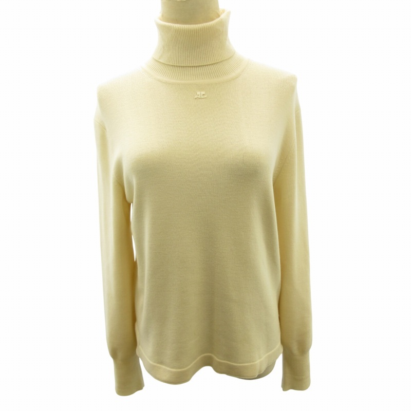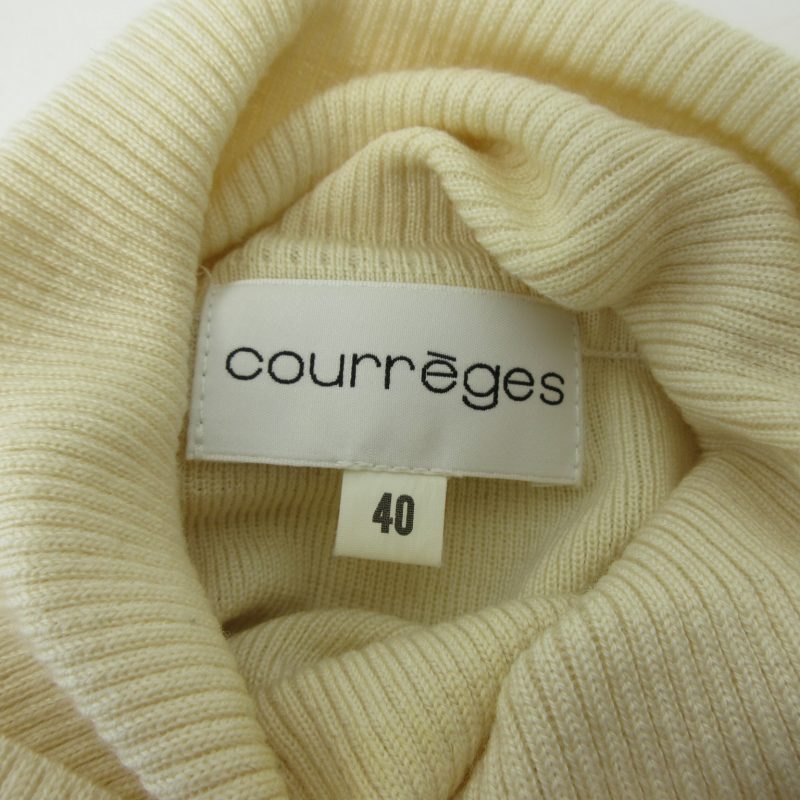 クレージュ courreges ロゴ刺繍 ニット セーター タートルネック シルク混 白 ホワイト 40 約M-L ■GY09 レディース