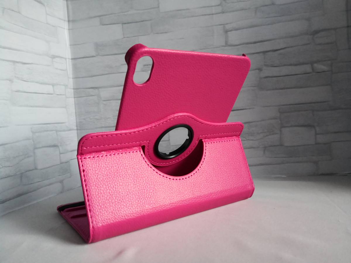 iPad mini6/mini7(A17 Pro) 共用 ローズピンク 360度回転機能付 レザー ケース