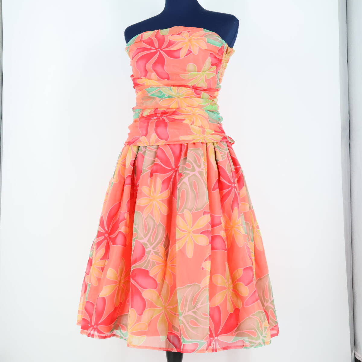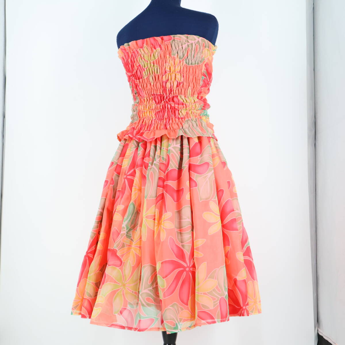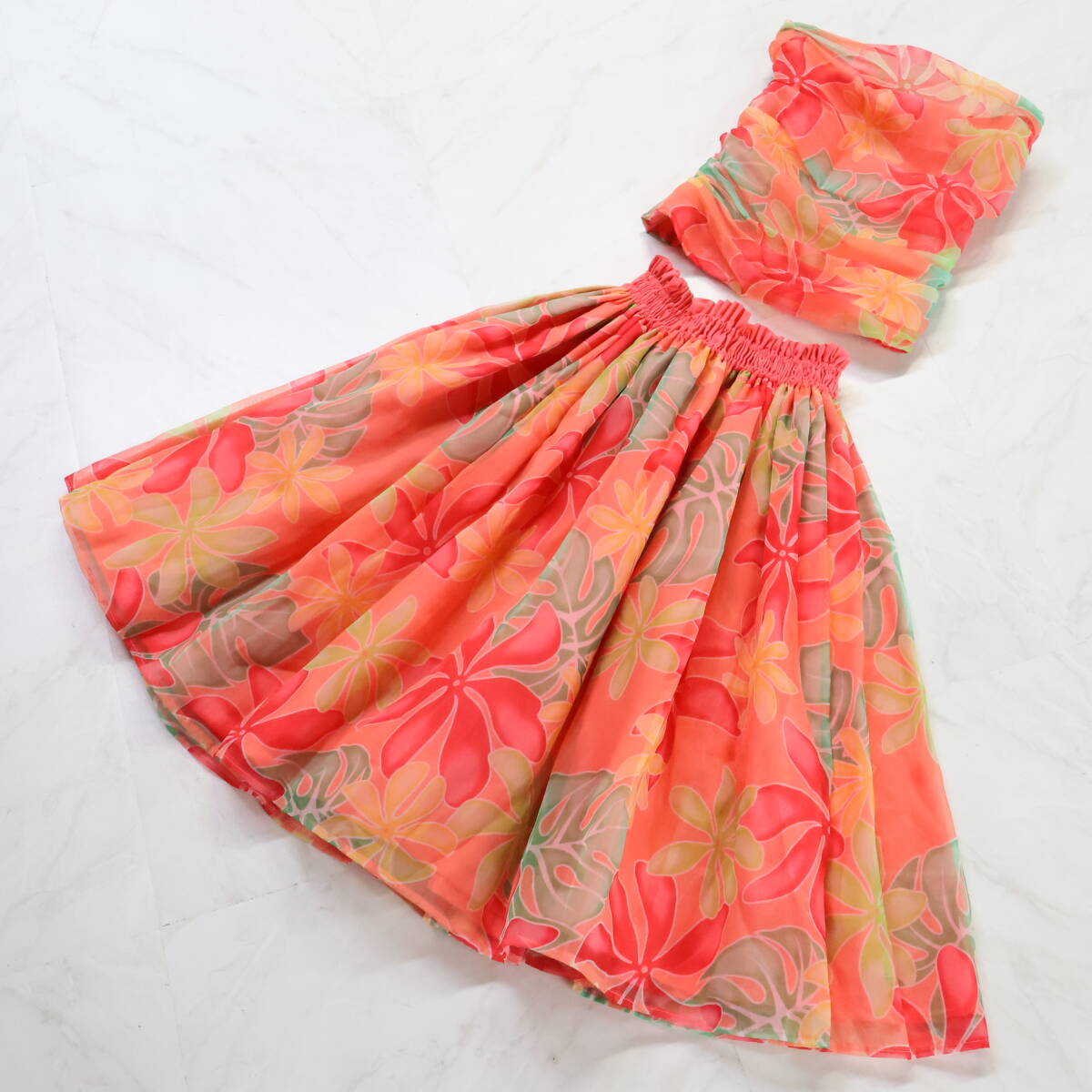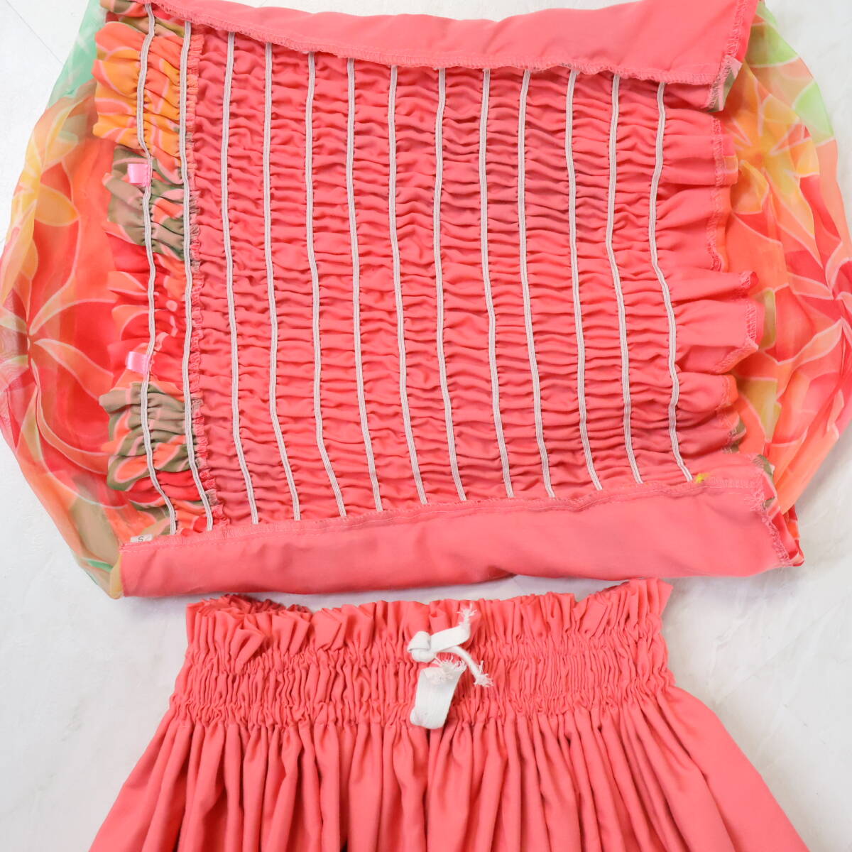 | 商品説明 | 【商品名】フラダンス衣装 上下セット ツーピース セットアップ トップス 【サイズ】表記無し 平置き実測:総丈約45cm(裾~胸上部まで)、身幅約36cm、ウエスト約33cm ※実測の為、多少の誤差はご容赦願います 【仕様】 ・背面ゴム仕様 ・背面のみ伸縮性有り スカート 【サイズ】表記無し 平置き実測:総丈約70cm、ウエスト約26cm~ ※実測の為、多少の誤差はご容赦願います 【仕様】 ・ウエストゴム2本仕様 ・ウエストのみ伸縮性有り ------------------------------------ 【ポイント】 ▽淡いピンクのセットアップ ▽ティアレ柄で華やかさ◎ ▽透け感のある生地で上品な印象に ------------------------------------ 【撮影時使用トルソー:女性用トルソー9号(一般的に使用されるサイズです)】 トルソーサイズ詳細 肩幅約37cm、バスト約88cm、ウエスト約66cm、ヒップ約89cm |