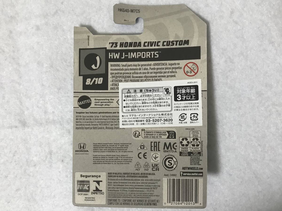 即決 ホットウィール ’73 HONDA CIVIC CUSTOM 黄緑 HotWheels ホンダ シビック カスタム HW J-IMPORTS 未開封