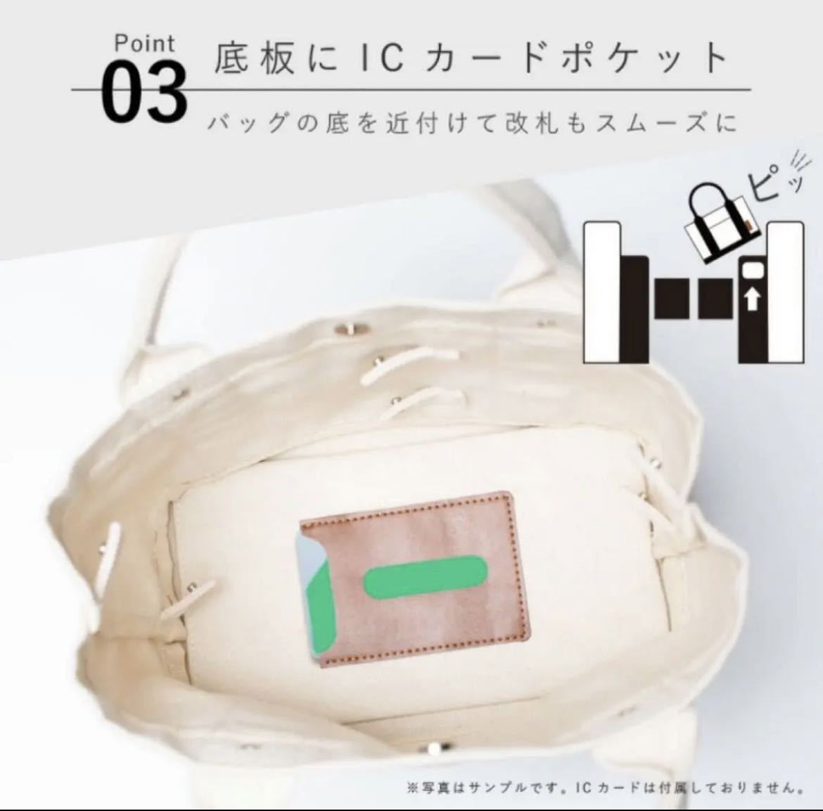 バックの底板にICカードポケットが差し込める】:バックの底を改札機にかざすだけでOK!改札機に触れなくても良いので衛生的に♪