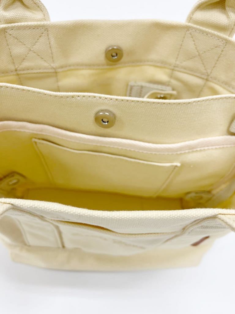 外側両面のポケットには、スマホや定期券などすぐに取り出したいものをイン!内側にはスマホや文庫本を横に入れれるオープンポケットが大、小2個♪