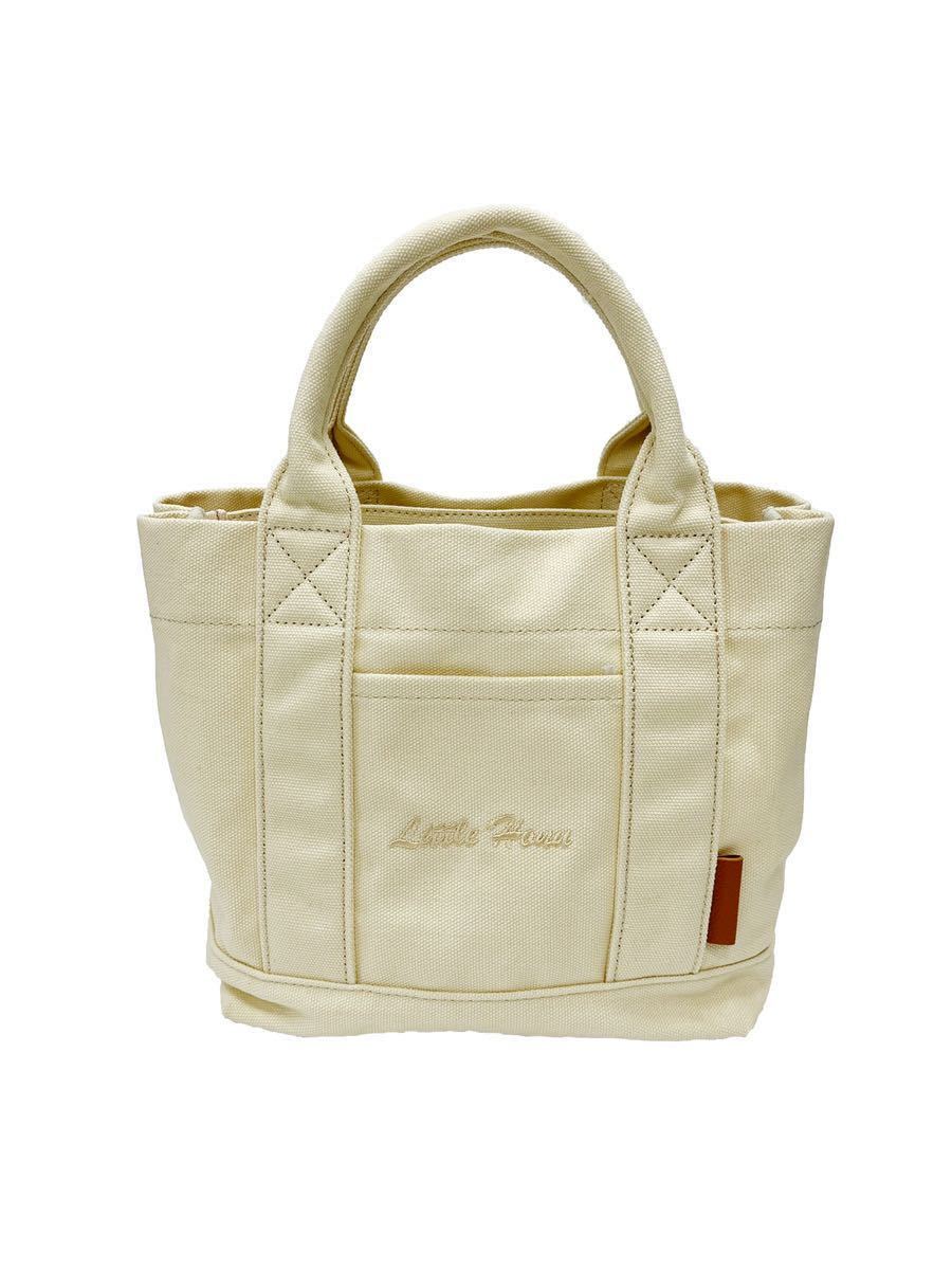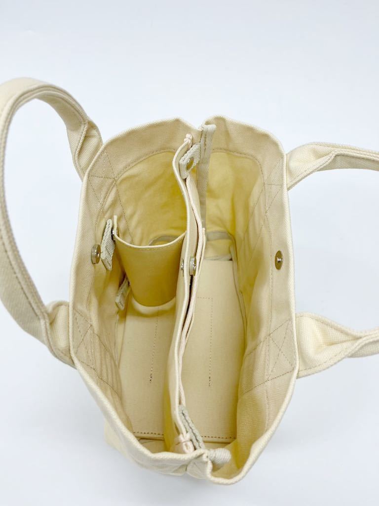 3つの仕切りで中に何が入っているか一目でわかる!お弁当など、かさばる荷物が多い日は仕切りを取り外して、普通のトートバックに変身。底板が入っているので沢山荷物を入れても安定して自立します。