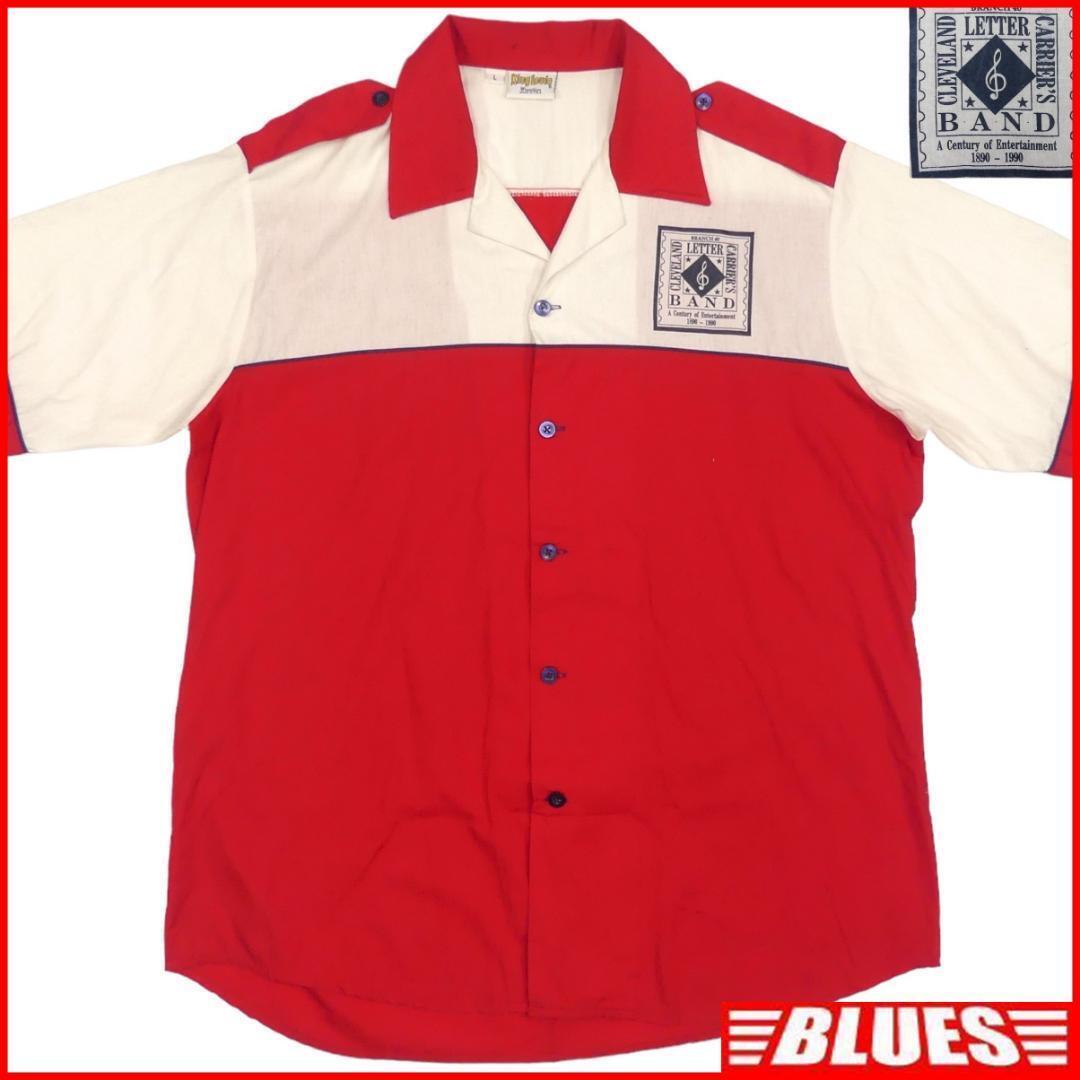 即決★アメリカ製 King Louie★メンズ L ボーリングシャツ キングルイ 白 USA 赤 半袖 70’s ヴィンテージ