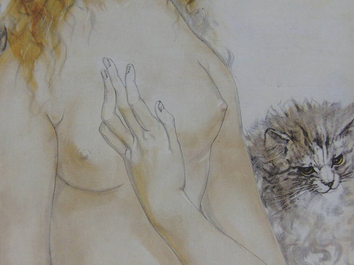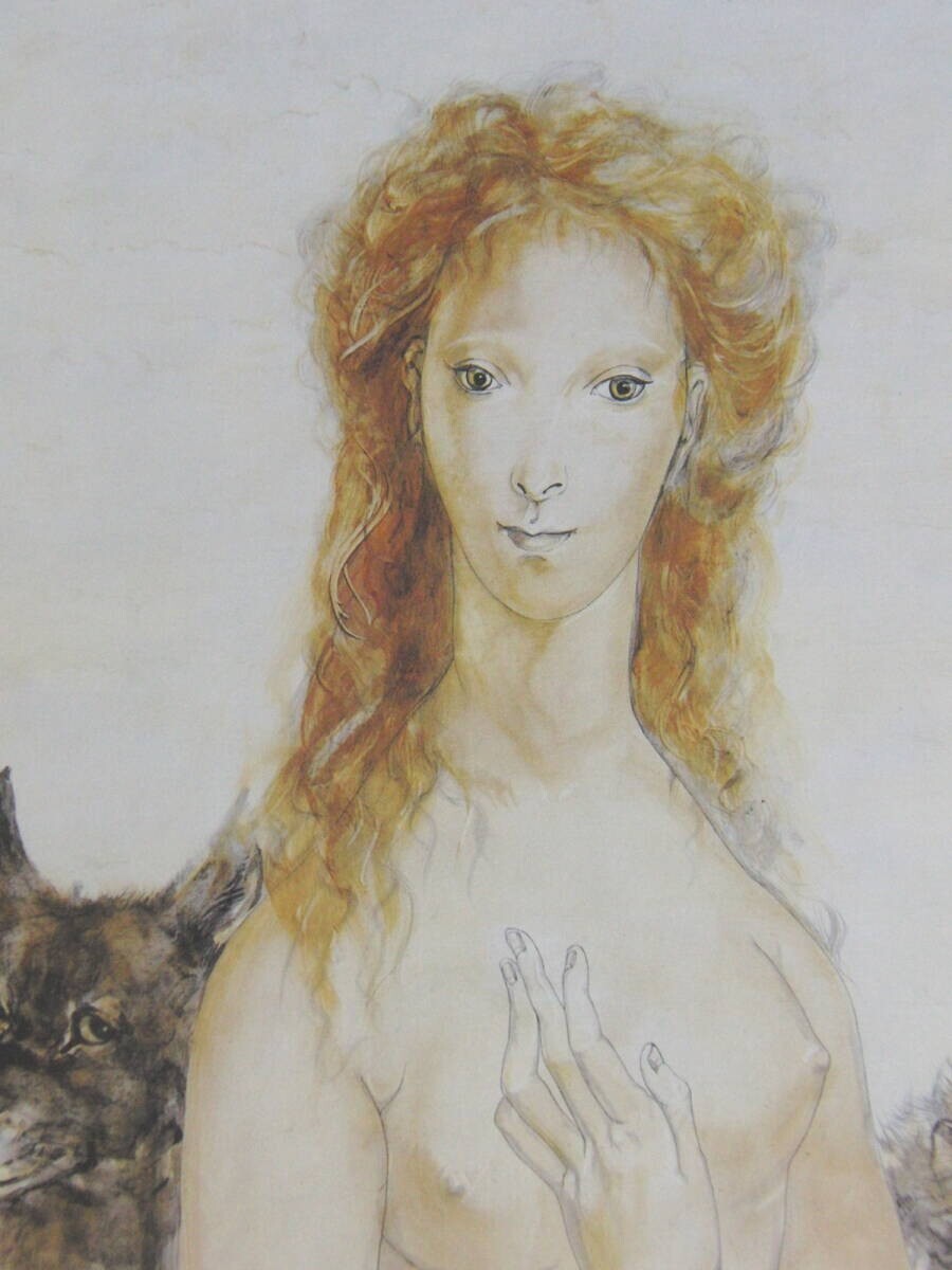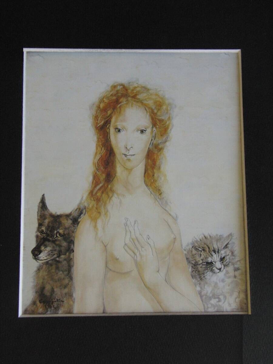 藤田嗣治「少女と猫と犬」、人気作品、希少画集・額装画、新品国産額にて額装付、コンディション良好、送料無料