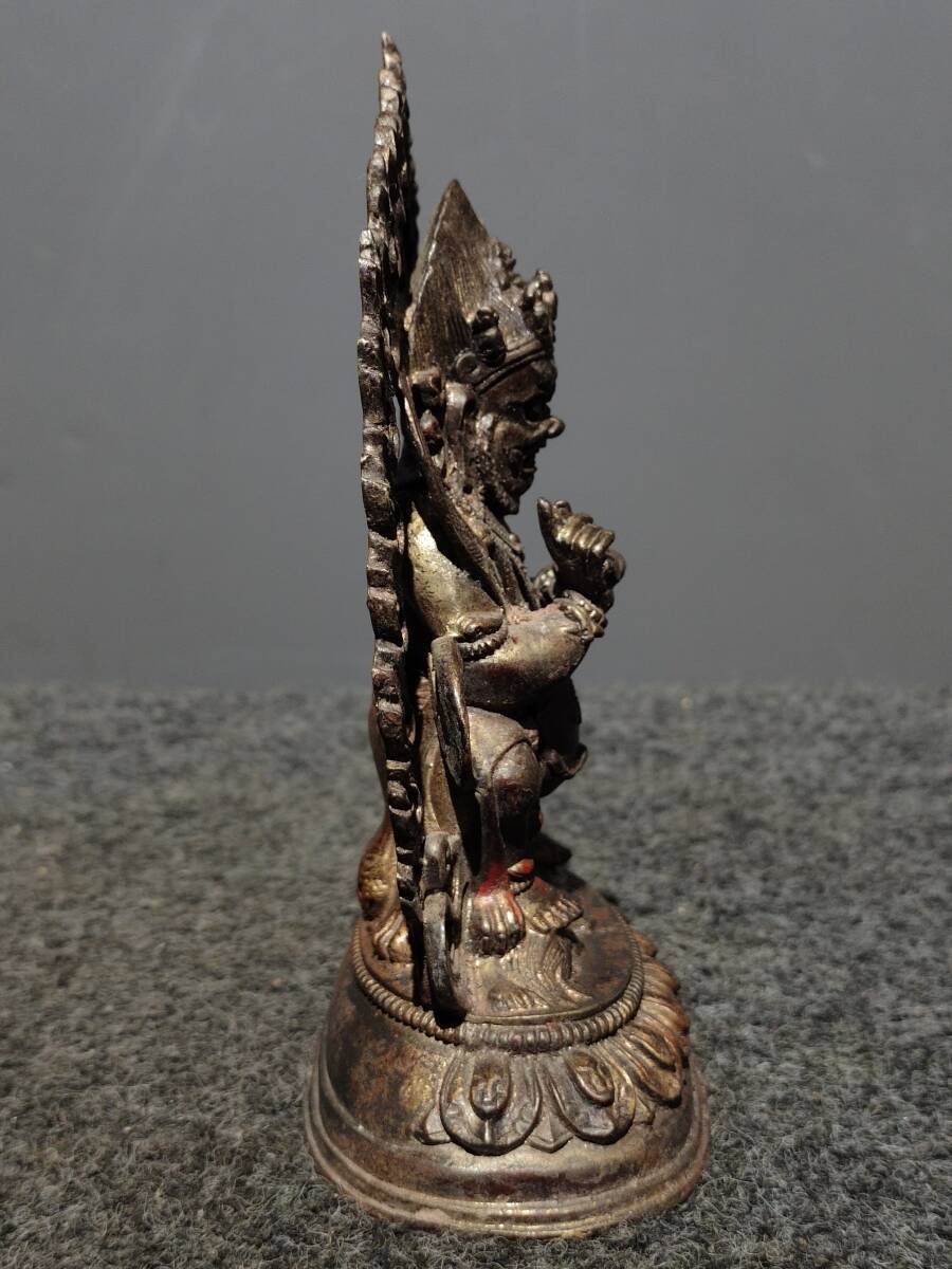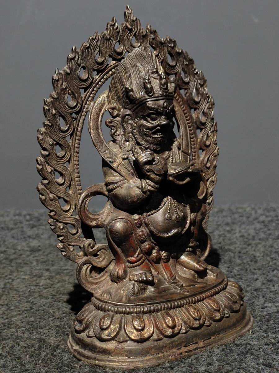 *珍品旧蔵* 清 純銅 泥金仏像【大黑天 金剛仏】一尊 頭戴寶冠盛坐 寶相莊嚴 觀音菩薩像 仏像 銅製 唐物 中国古玩 仏教古美術 供養品 H44