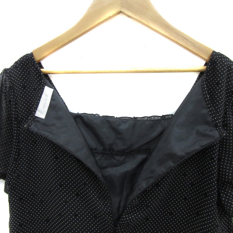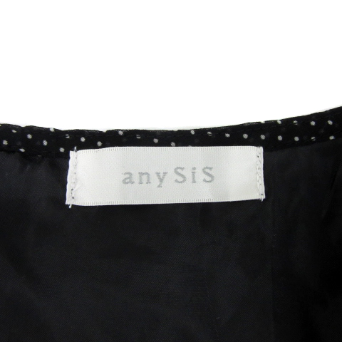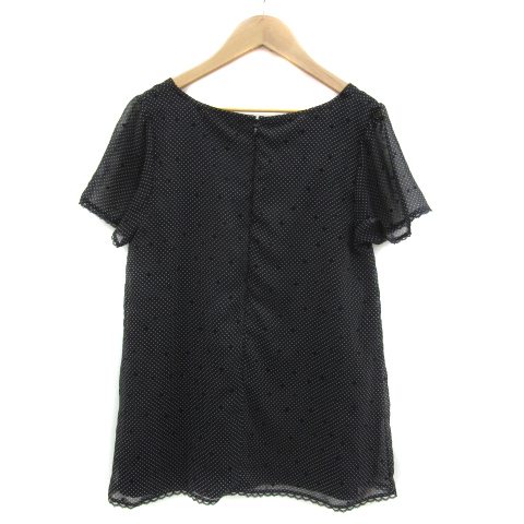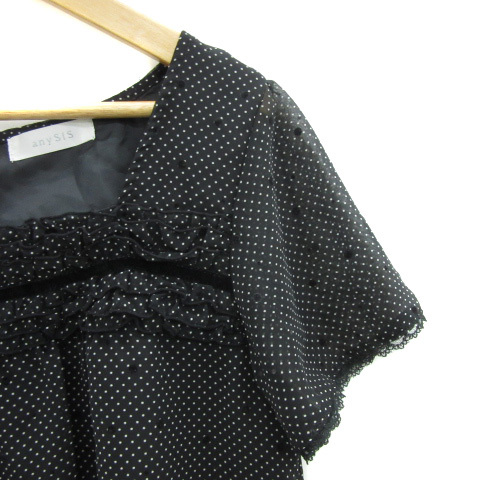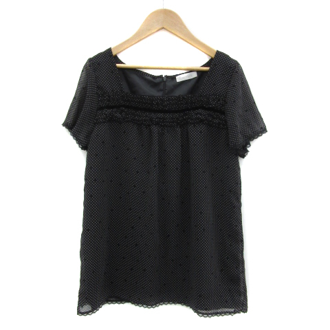 エニィスィス エニシス ブラウス カットソー 半袖 スクエアネック ドット柄 フリル レース 2 黒 ブラック 白 ホワイト レディース