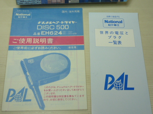 National ナショナル DISC500 EH624 ヘアードライヤー 小型 携帯ヘアードライヤー 昭和レトロ