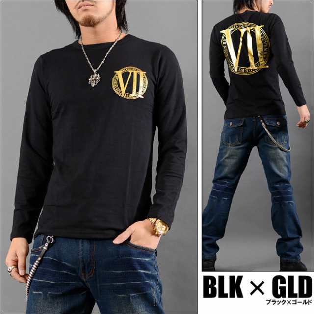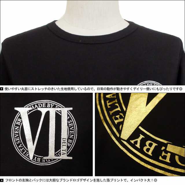 DELTA SEVEN ラメ文字ロゴプリント メンズ 長袖Tシャツ 黒 del-70652ブラックxシルバー L