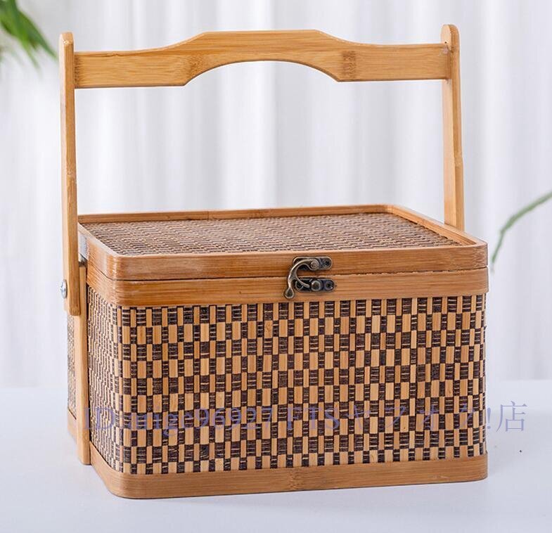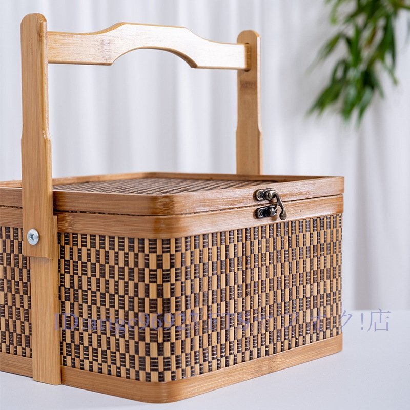 ★新品セレブ好物 人気美品☆ 民芸職人手作り 提籃籠 收納盒 茶道具籠 茶具 竹細工 收納 竹工芸