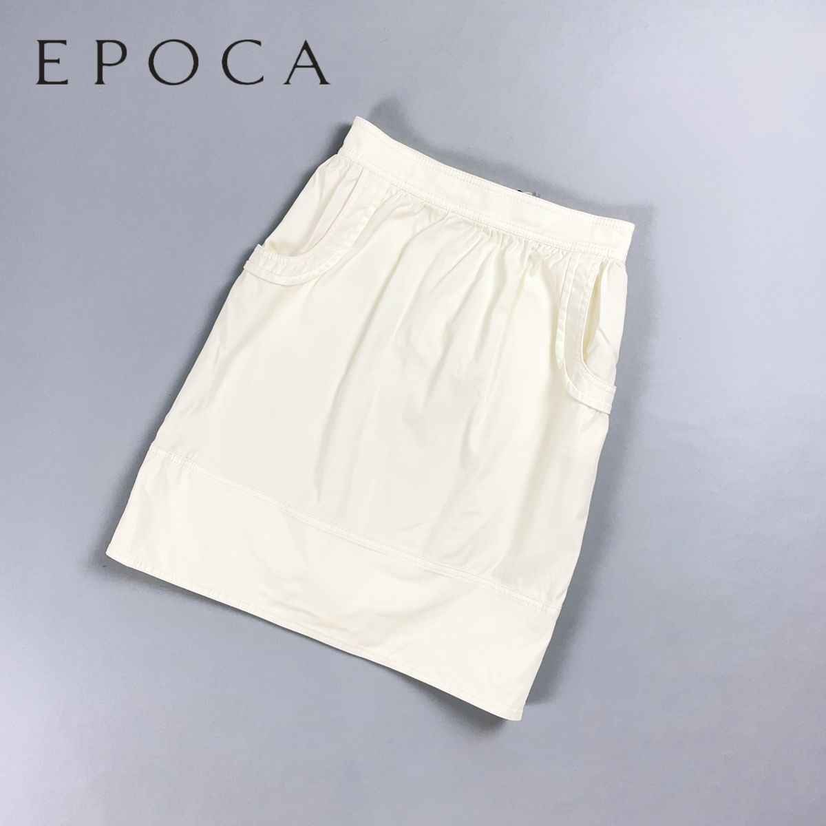 新品未使用 EPOCA エポカ ストレッチツイルギャザースカート バックジップ タイト 膝丈 ホワイト 白 サイズ42*BD813
