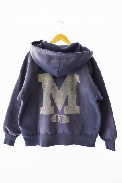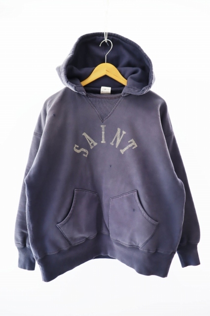 セントマイケル SAINTMICHAEL × BerBerjin ベルベルジン 23AW BJ CRW SWT M13 ダメージ加工 ロゴ プリント フーディ パーカー SM-A23-0000-C15 L ネイビー
