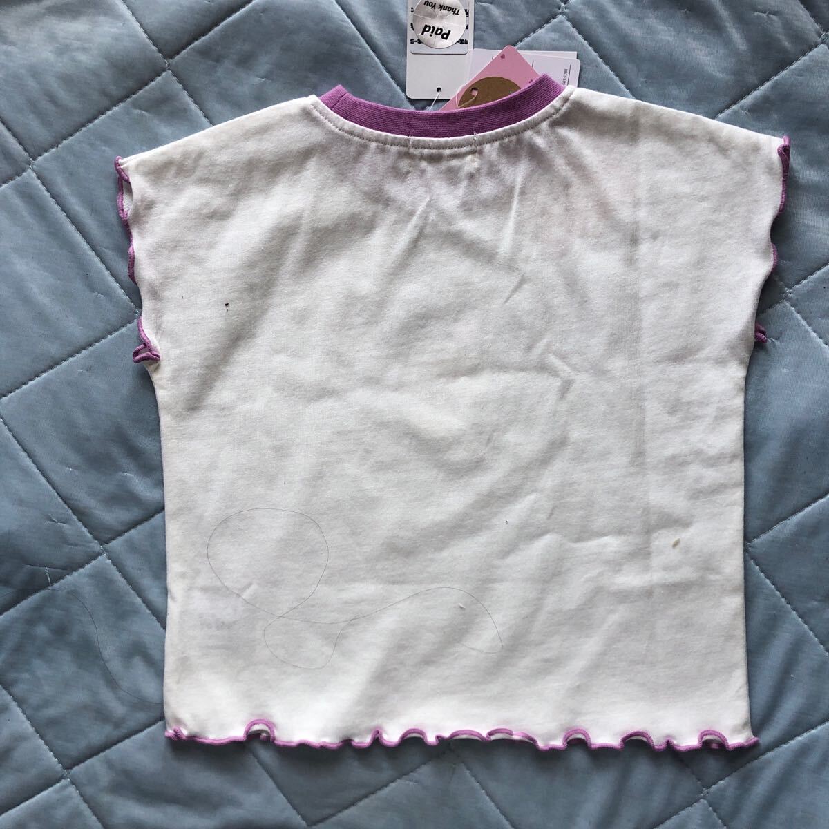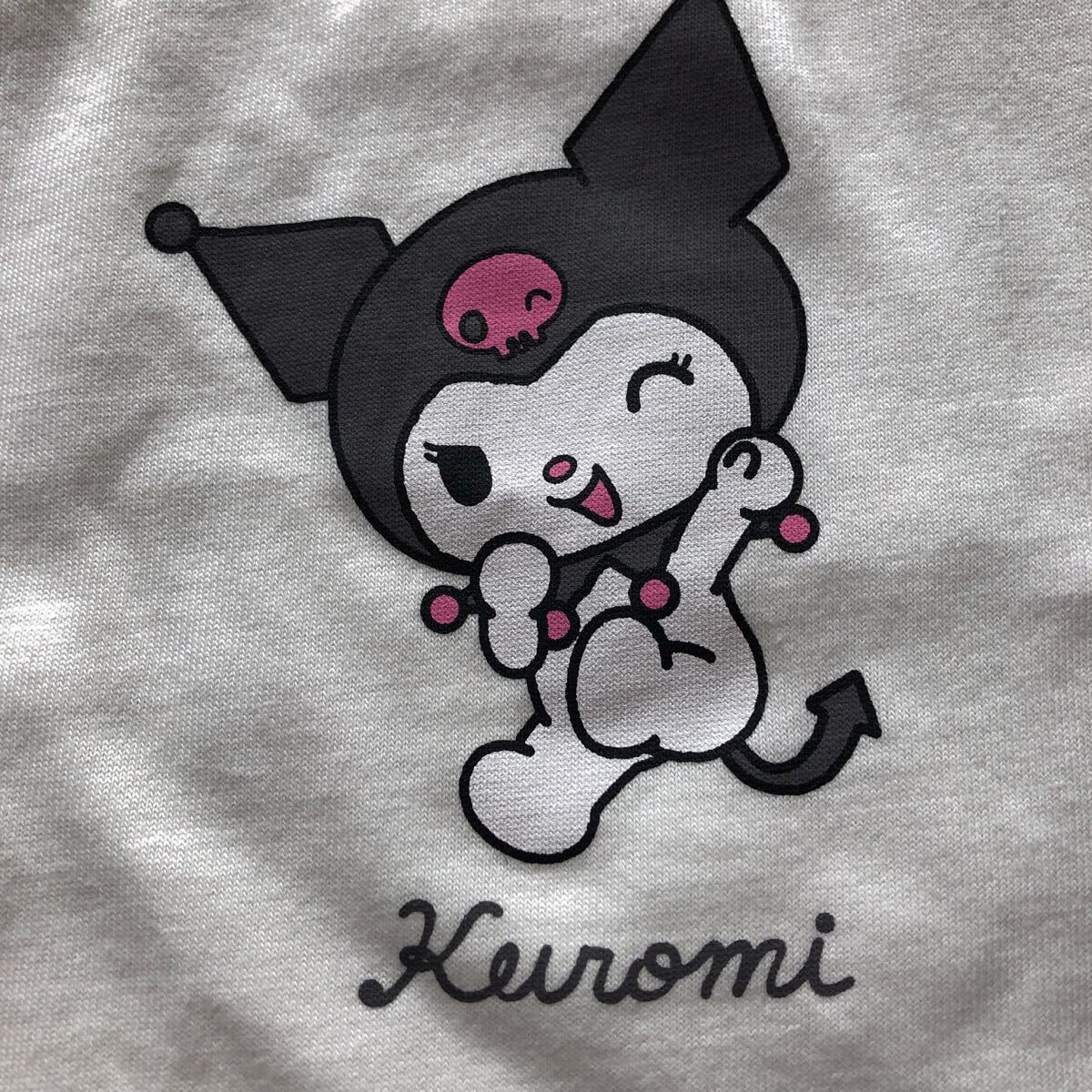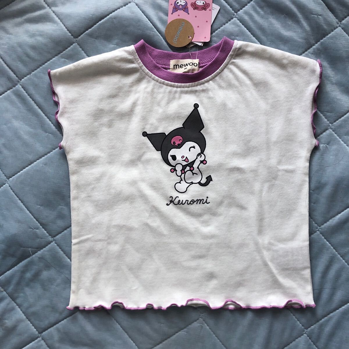 KuromiデザインのコットンTシャツ、フリル裾付きで可愛らしいスタイル。