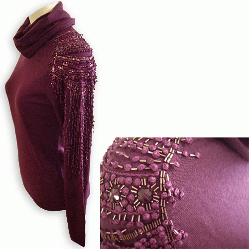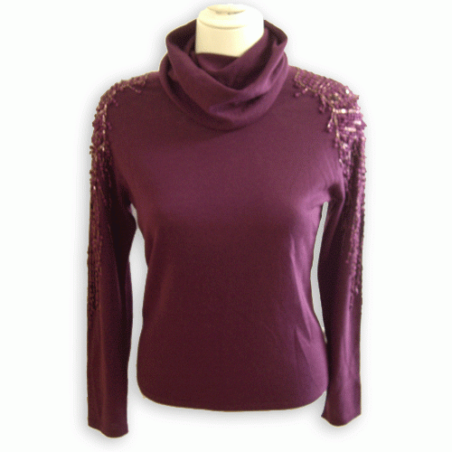 レディースハイネックニット 長袖 パープル サイズ:40